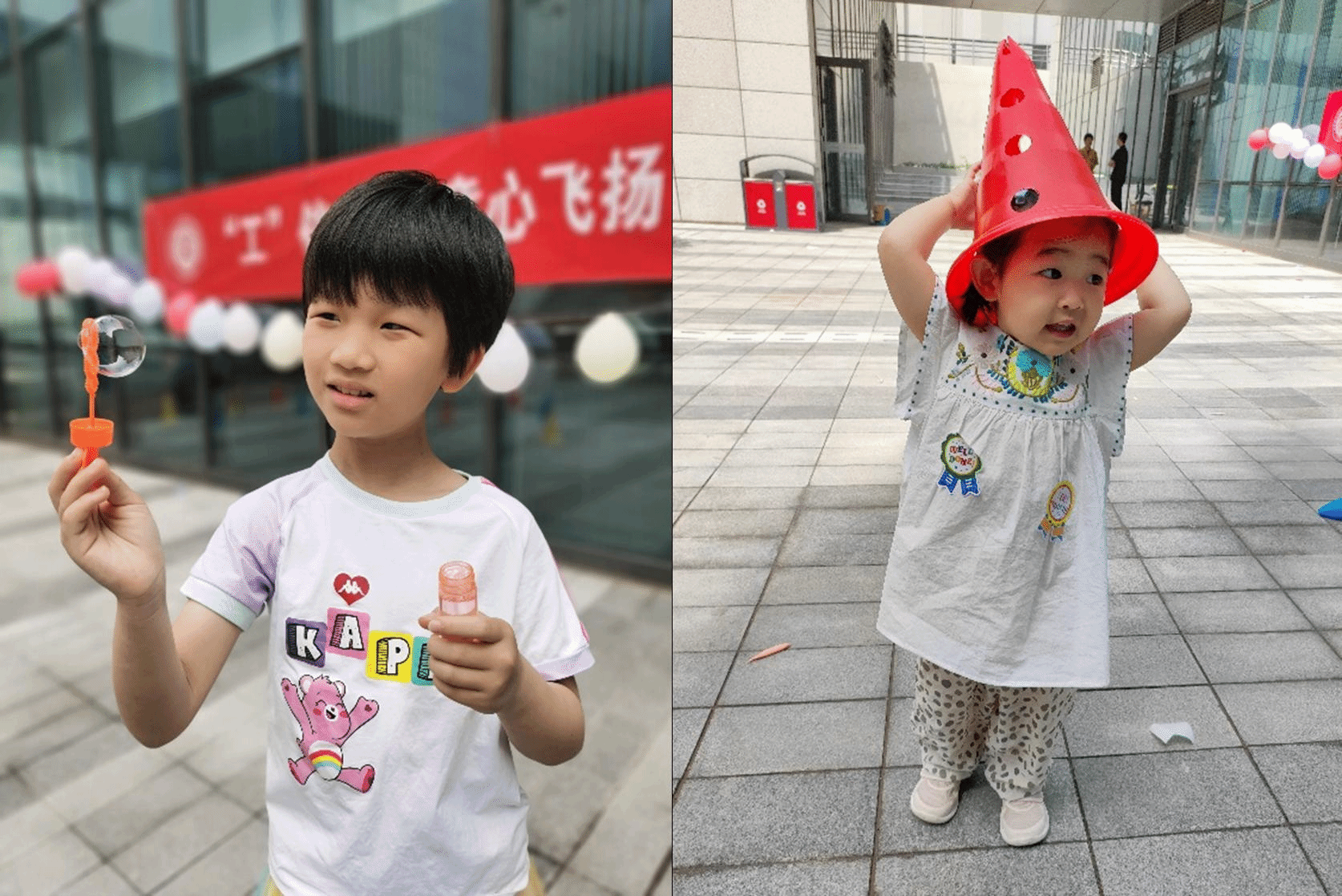 童心童趣同乐乐,且游且戏惬融融。为了给孩子们留下美好的节日记忆,2023年6月1日,化学学院工会在C楼下沉广场举行了“‘工’伴成长、童心飞扬”六一儿童节游园活动。