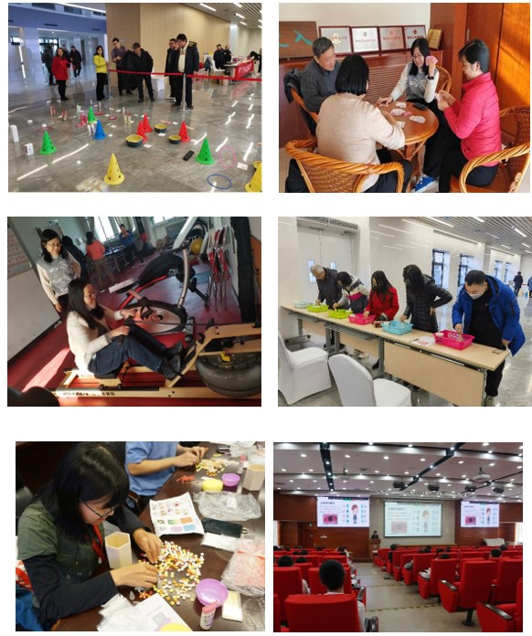 套圈、扑克、划船、夹玻璃珠、手工和健康讲座活动