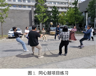在往届运动会中,化学学院凭借在集体项目中的出色发挥斩获不少积分。在2019年运动会中,化学学院更是在同心鼓项目中以200个的优异成绩夺得冠军。由于时间冲突等原因,今年同心鼓项目的参赛队伍中大半都是新人,但我们希望通过练习能够延续传统强项的优异成绩。在前两次的练习中,新队伍的默契稍显不足,成绩不够理想。但是大家并没有气馁,利用午休时间多次组织练习。同心鼓老队员关妍、张莉和周江老师热心参与指导,根据自己多次参赛经验向大家传授不同情况下的救球技巧,纠正大家双臂展开姿势与双脚站位等细节,并不断调整排兵布阵达到最佳配合。这支新组建的队伍也从失败中吸取教训,不断磨合,进步显著。