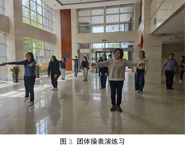 此外,院工会还组织了一支30人队伍参与运动会开幕式团体操表演,每周定期根据官方教学视频进行练习,各位参与的老师都认真学习,积极准备,不放过每一个细节。“完全人格,首在体育”,化学学院工会不仅积极准备运动会各项比赛项目的训练,在日常生活中也时刻注意鼓励教职工们加强锻炼,强健体魄。在紧张的工作之余,学院工会坚持组织每天两次的广播体操活动,教职工们都积极参与,表示每天10分钟的活动能有效缓解工作带来的大脑和肌肉疲劳,从而提升精力,以更好的状态投入到工作中。
