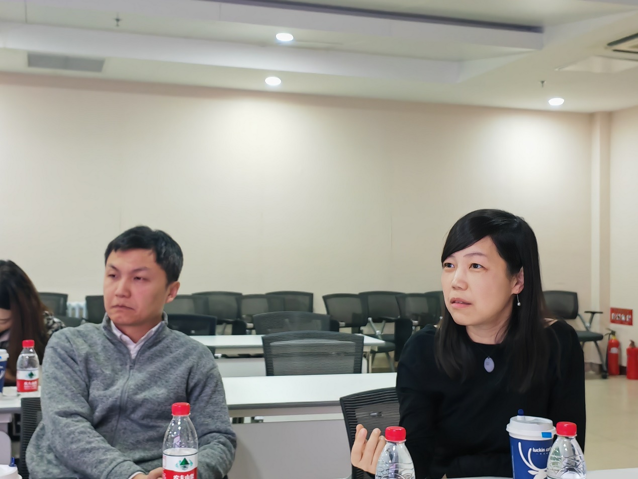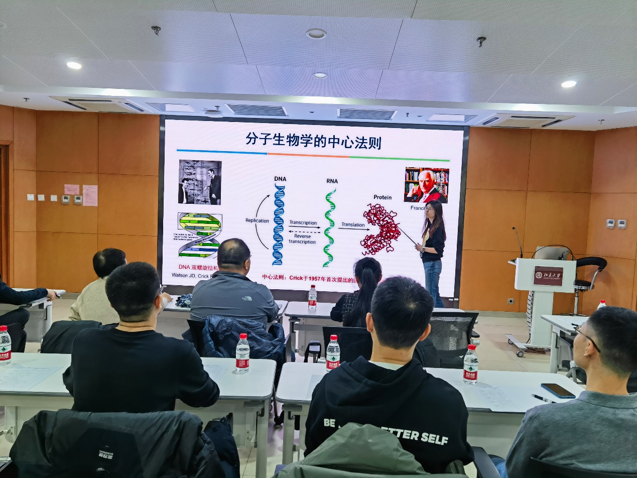 刘君老师以《分子生物学》课程中的“真核生物转录及调控” 为主题,从中心法则以及细胞多样性入手,通过提问引导听众关注人类细胞数量及类型的问题,引出基因转录的重要作用,然后详细介绍了真核生物RNA聚合酶发现历程,内容丰富且娓娓道来,引人入胜。承担《演化生物学》课程的遇赫老师则以“人类的起源与演化”为题,从“我是谁”、“我从哪里来”、“我要到哪里去”这3个永恒的哲学问题切入,引发了大家的浓厚兴趣;随后巧妙运用教具展示了当代智人和古人类头骨的差异,接着重点介绍了人类起源的多种理论,中间穿插北京猿人的发现和遗失、智人与古人类间基因交流等故事,层次分明且逻辑清晰,充分展现了演化生物学课程的魅力。两位老师演讲时,台下观摩的老师们认真倾听,积极配合提问与互动;试讲结束后,各位老师纷纷提出意见和建议,从授课节奏与内容安排,到教具展示与板书设计,再到师生互动与提问技巧及思政因素融合等方面,为参赛老师提供了有益的参考,会场讨论热烈,不时传出阵阵笑声。不知不觉中三个小时便悄然流逝,但大家仍意犹未尽,会后继续留下深入探讨交流。这次研讨会上,无论是演讲的老师还是观摩指导的老师,都表示收获颇丰,希望今后能继续举办类似活动。刘君与遇赫两位老师均表示,此次活动增强了她们对比赛的信心,预祝两位老师在即将到来的正式比赛取得优异成绩!
