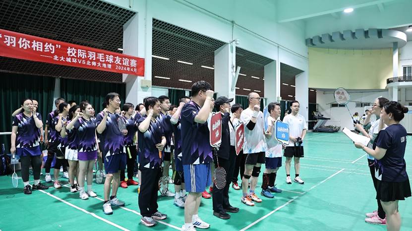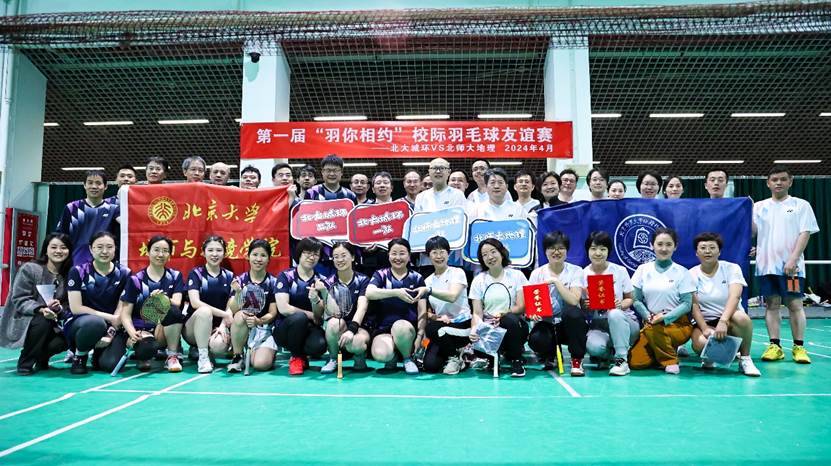 2024年4月2日晚上,由北京大学城市与环境学院主办的“羽你相约”校际羽毛球友谊赛在北京大学五四羽毛球馆成功举行。本次参赛队伍为北京大学城市与环境学院、北京师范大学地理科学学部。两家单位共派出了40位教职工参赛。赛事旨在通过体育运动提高教职工身体素质,增进双方友谊,促进两校地理学科教师间的交流合作,营造积极向上的校园体育文化氛围。