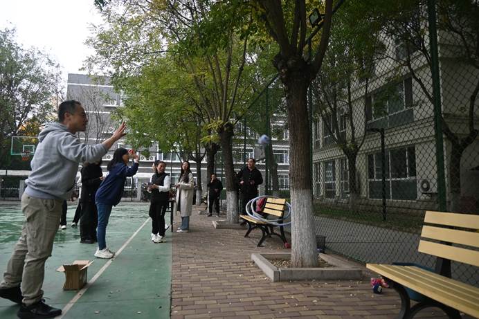 沙包投准项目中,教职工们精准投掷,每一个投中都引起大家的欢呼。