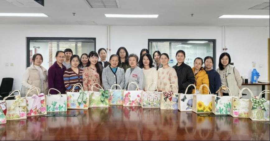 在春意盎然的三月,为庆祝第114个“三八”国际劳动妇女节,倡导绿色生活理念,3月4日上午,环境科学与工程学院工会开展“相约妇女节环保‘袋’回家”蝶骨巴特帆布袋DIY活动,用艺术创意为环保赋能,让环保理念“袋袋”相传。学院20余名女教职工参与体验,学院工会主席占子玉代表学院向全院女教职工致以节日问候和美好祝愿。