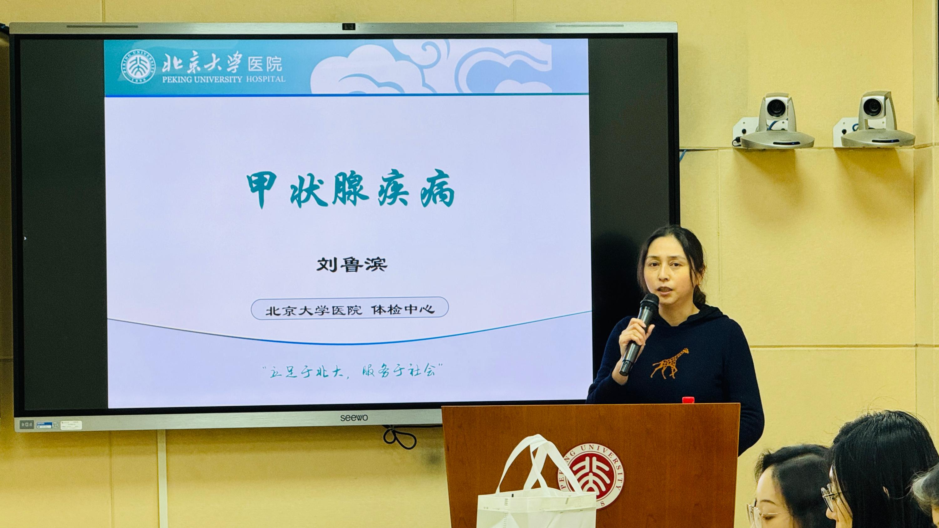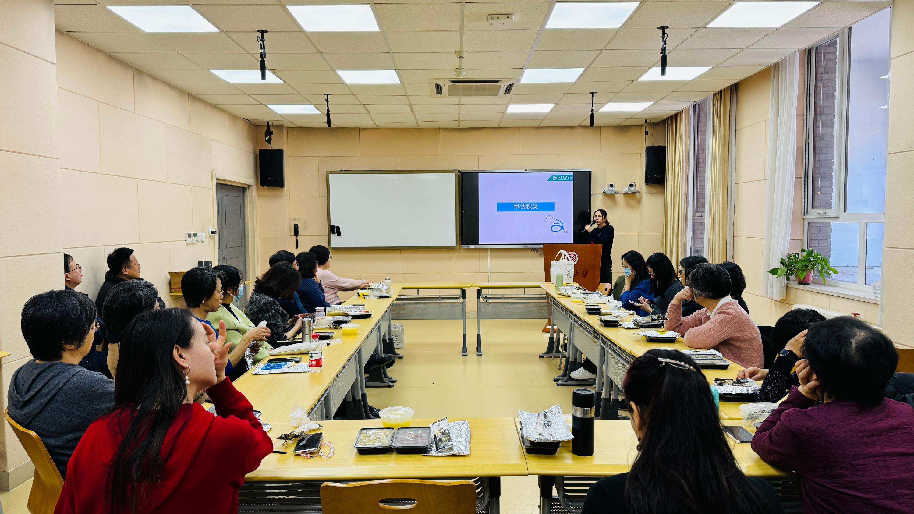 随后,她围绕疾病和碘营养的相关性进行介绍,一旦碘摄入增多或者过量或者减少缺乏,都会引起甲状腺功能的改变。碘缺乏以后会出现甲状腺肿,很多地方性甲状腺肿俗称大脖子病,这是在以前的时候是非常常见的。在国家普及碘盐之前,地方性甲状腺肿的患者非常多的。碘过量的话,慢性碘过量长期会引起调节失衡。碘过量以后会出现甲亢或甲减。她还介绍道,去年3月起,校医院每周四下午开设了健康管理门诊,可以对体检后的报告做深度解读,根据体检结果,进行健康指导。她建议大家,主动接受健康教育,改变生活方式,控制危险因素,而且定期体检、早发现、早干预、早治疗,如果发现问题,积极治疗,预防复发。