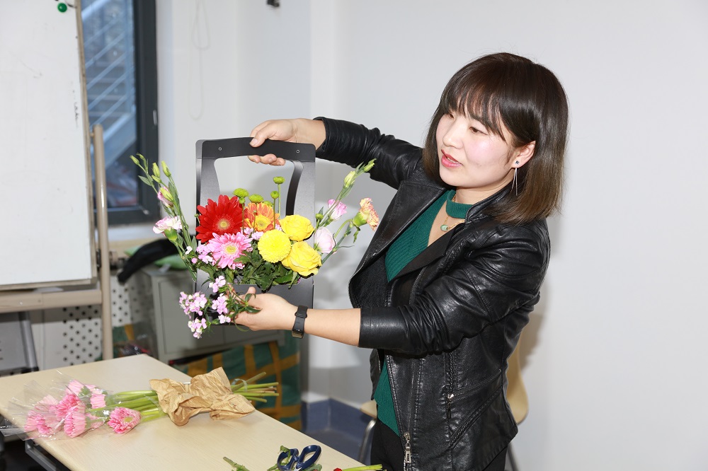 活动邀请了专业花艺老师为大家讲授了插花基础知识,现场演绎插花技巧,并从花材的选择、修剪、构图等方面深入浅出的讲解,指导大家自己动手进行操作。女教职工们热情高涨,大家从主花入手,根据不同的色彩搭配,空间调整,完成了各自手中独具匠心的花艺作品。每个插花作品都有自己独特的创意。含苞待放的花束与笑靥如花的女教职工们交相辉映,显得格外美丽。