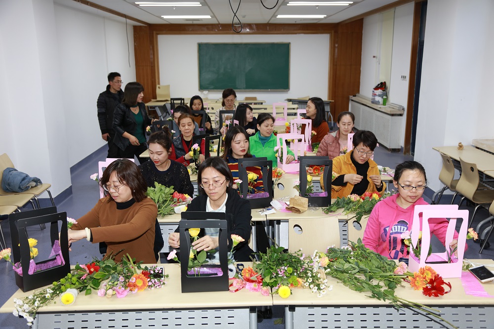 为迎接第109个国际妇女节的到来,国际关系学院工会别开生面地为女教职工举办了艺术插花活动,丰富了女教职工的精神文化生活,提高了审美情趣和艺术修养,学院工会主席闫岩老师、工会副主席霍艳丽老师等共20余名女教职工积极参与。
