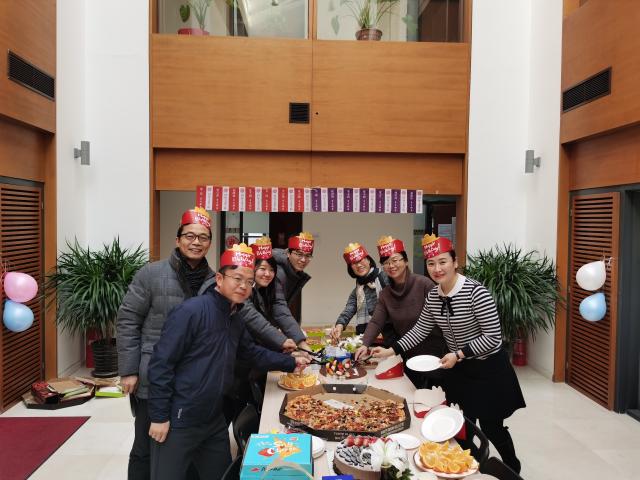 生日会上,大家交流近况,互致问候,品尝美食,畅叙情谊。生日寿星们更是戴起生日帽,争相合影留念,希望记录下这一温暖而又难忘的时刻。会后,作为寿星之一的曹宝萍老师,高兴地把活动照片晒到了自己的微信朋友圈,并配文到:“感谢国关大家庭!感谢这个温暖的集体!感谢一起过生日的同事们!感谢为生日会忙碌的闫岩老师、霍艳丽老师、汪洋老师和刘伟老师!”。