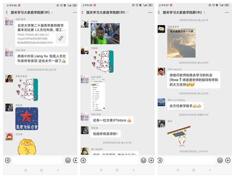 喜报传来,全院老师无不鼓舞振奋,大家纷纷通过微信等方式向许亮老师表达祝贺。功夫不负有心人,许亮老师凭借认真、踏实的态度,勤奋、认真的准备,高水平的教学方法和独特的个人魅力,赢得了学校师生的认可和好评。