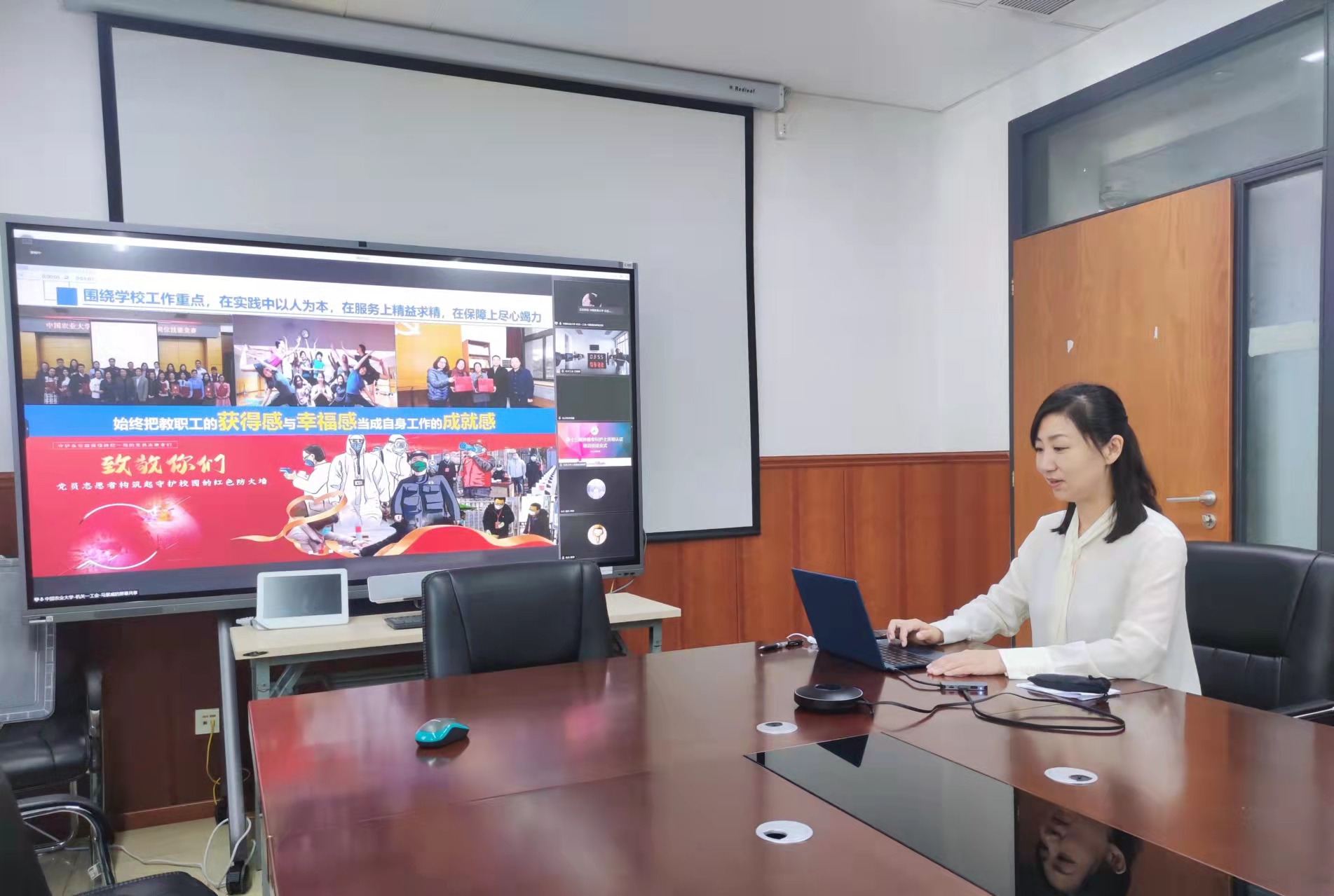 为引导广大教育系统工会组织和工会干部在新时期不断加强和创新职工之家建设,有效激发基层工会活力,北京市教育工会于2021年6月-10月组织开展了2021年北京市教育工会先进教职工小家的推荐展示活动。北京大学工会首先推选校内优秀模范工会,再参加全市范围统一评比。评比过程中,国际关系学院工会副主席霍艳丽老师作为代表进行汇报展示。学院工会主席闫岩老师、副主席霍艳丽老师事先做了精心准备,把学院工会近年来的工作,通过五分钟的PPT进行了完美地展示,并播放了学院教职员工的视频短片,内容详实、图文并茂、精彩纷呈,给评委和全市工会代表留下了深刻的印象,顺利通过考核评选。