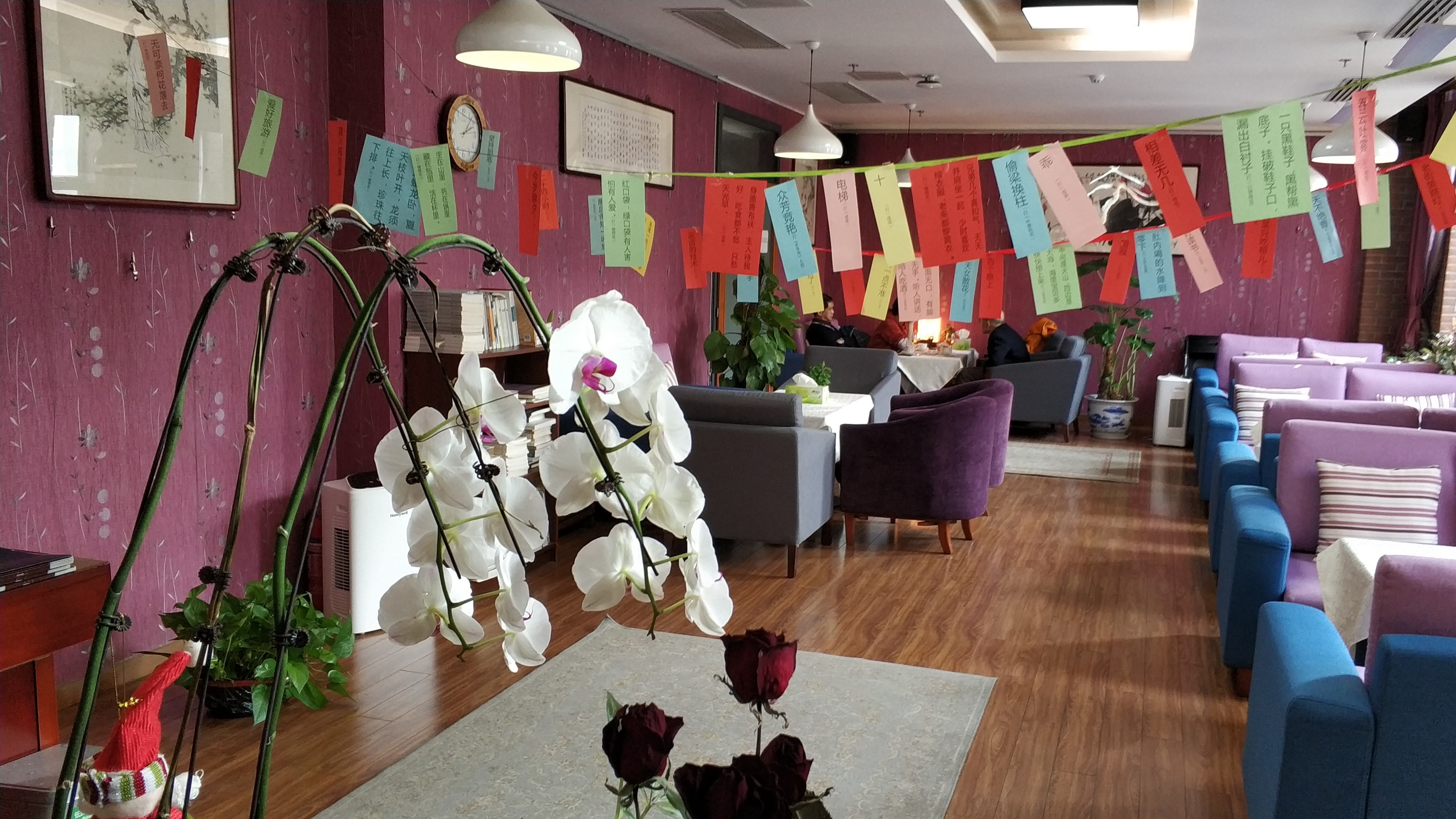 节日里的咖啡厅,在工会主席闫岩老师和副主席霍艳丽老师的精心装扮下焕然一新,室内悬挂起了绚丽多彩的字谜彩条,茶几上摆满了美味诱人的蛋糕茶点,学院的老师们也纷纷从繁忙的工作中抽出闲暇,参与到此次“猜字谜、庆元宵”的活动中来。猜字谜是元宵节的一项传统习俗,它不但增添了传统节日的气氛,同时也为全体教职工提供了抒怀遣兴、锻炼思维能力、展现聪明才智的平台。