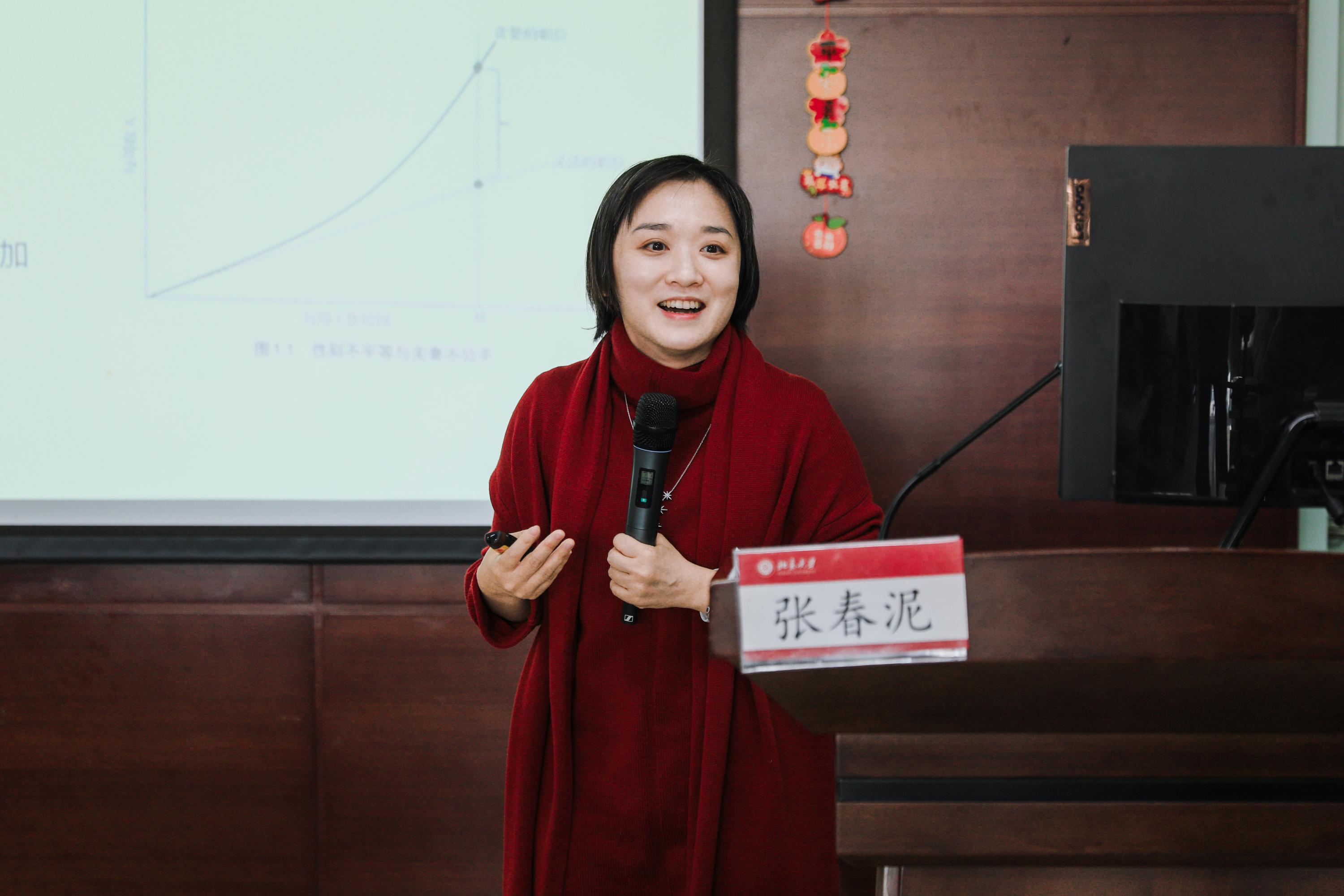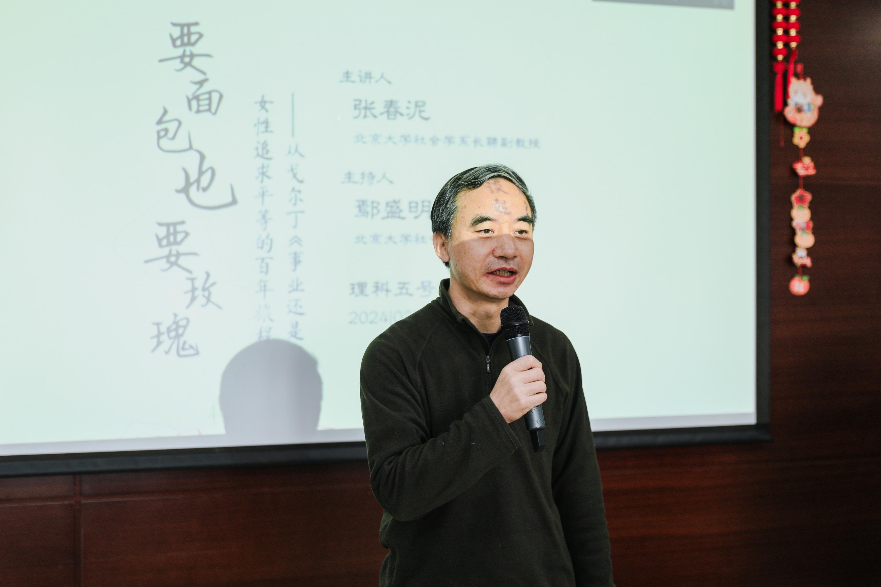 本次报告会由北京大学社会学系长聘副教授张春泥担任主讲人,北京大学社会学系工会主席鄢盛明副教授主持。张春泥老师以“要面包也要玫瑰——从戈尔丁《事业还是家庭?女性追求平等的百年旅程》(下文简称《事业还是家庭》)谈起”为题进行了精彩的学术报告。超过百名校内外师生及访问学者线下参与了本次报告会,现场气氛活跃、讨论热烈。