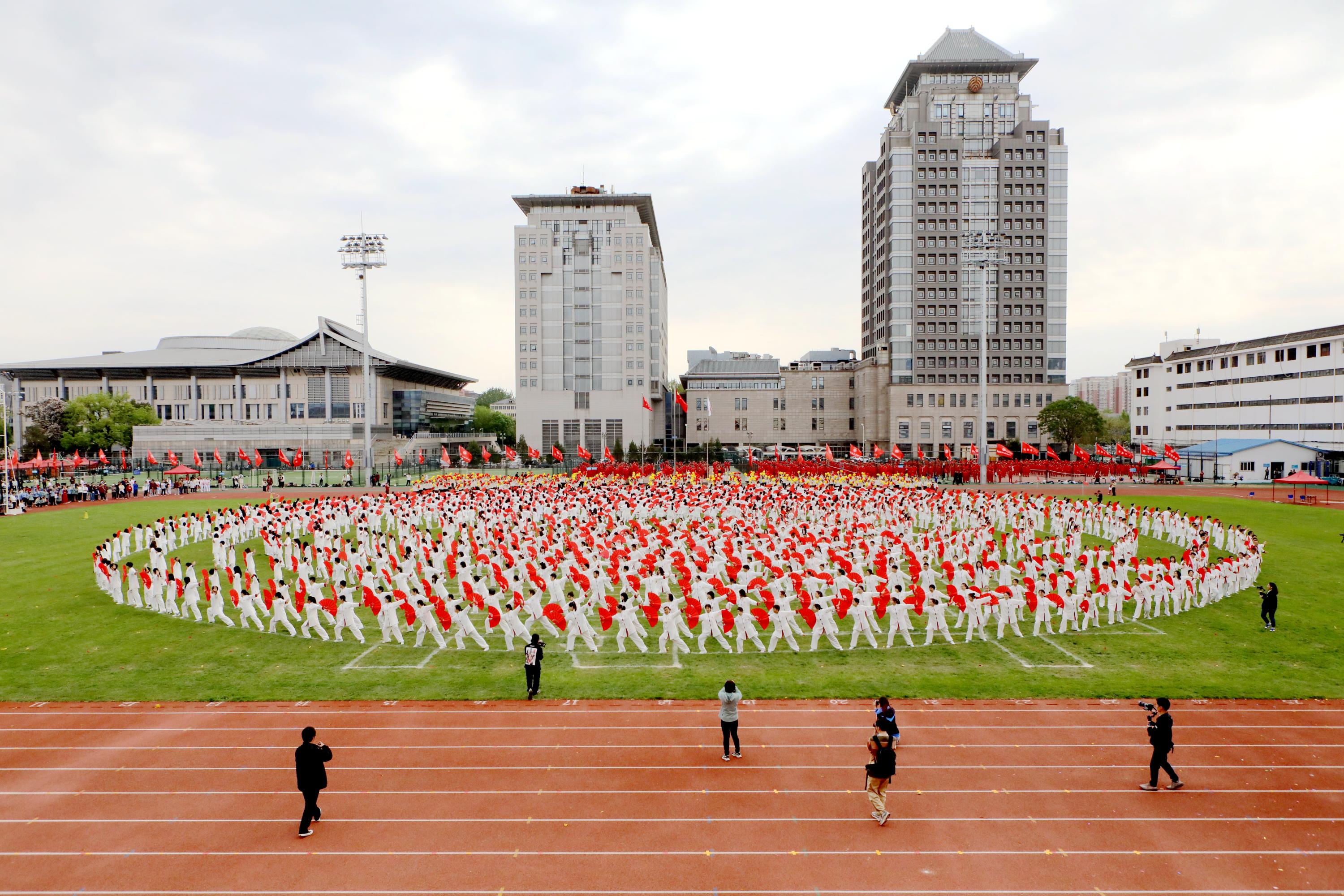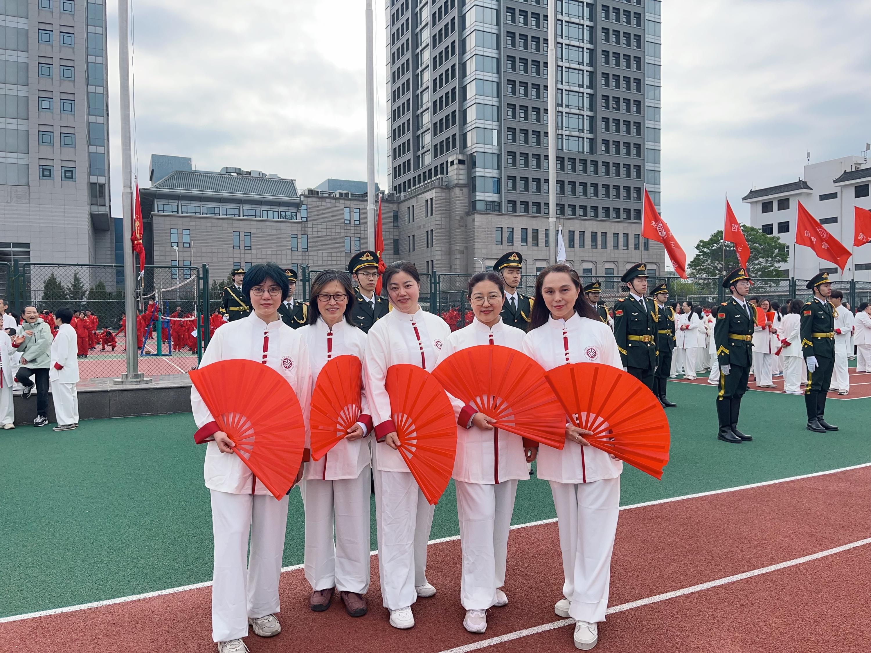 红扇翻飞展团结:社会学系参加团体操的老师们