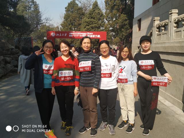 社会学系七位女职工于3月8日在未名湖畔参加了北京大学庆祝中华人民共和国成立70周年暨迎“三八”女教职工环湖接力跑活动。