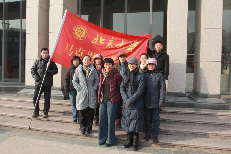 短暂休息后,大家一起从理科5号楼前往百年纪念讲堂南广场集合。红底白字的横幅,在冬日阳光的映衬下格外醒目!