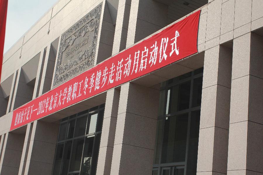 这一天中午,主题为“健康始于足下”的2012年北京大学教职工冬季健步走活动月启动仪式隆重举行!为了参加这个活动,马克思主义学院的很多老师较往日提前去食堂吃中饭,看到五四运动场热闹非凡――原来学生也有活动――“健康达人积分赛”,好壮观!听说,今天附中也要来未名湖长跑呢!