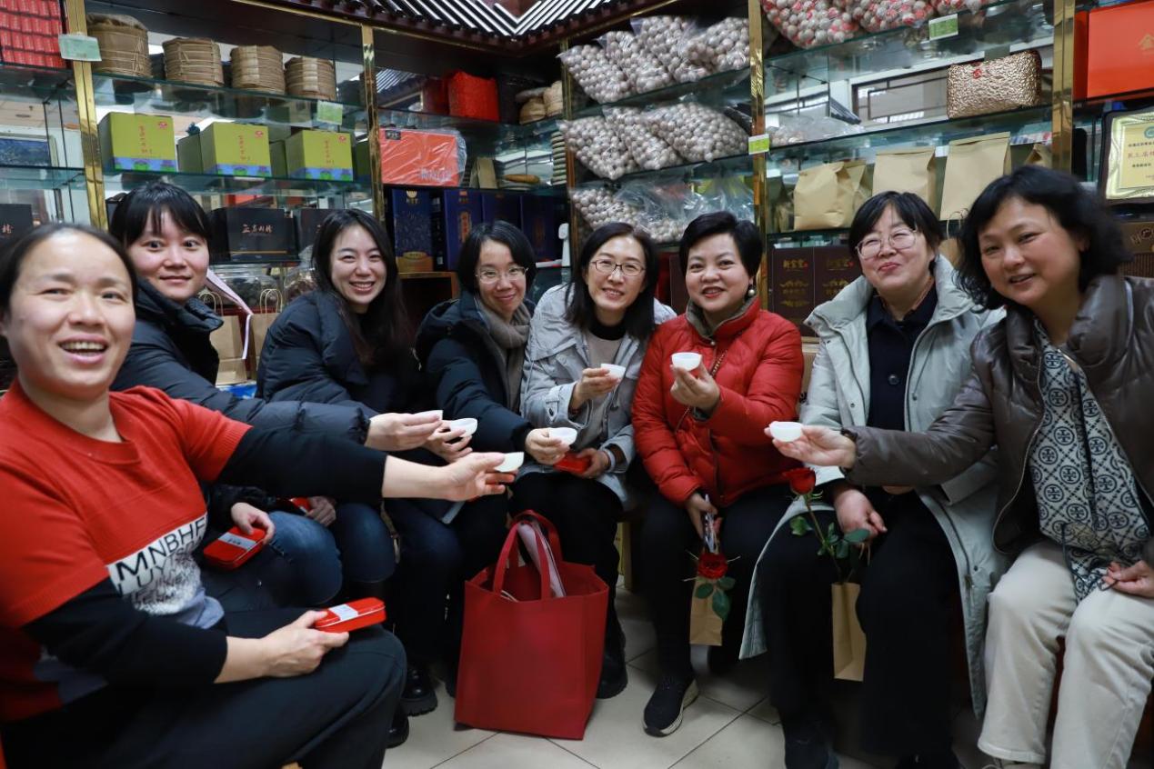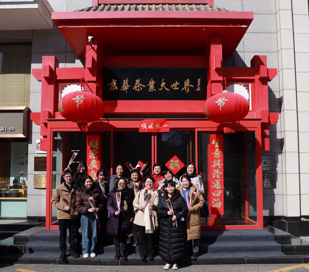 2024年3月8日下午,在学院工会主席许静的带领下,院党委委员、工会副主席徐金灿,文体委员刘金河,女工委员王金媛,组织委员、宣传委员刘杨,财务委员魏波以及何姝、张蓉丁等十余名工会会员前往位于北京市西城区的马连道茶城参观体验。本次活动得到了学院领导的关心和大力支持。