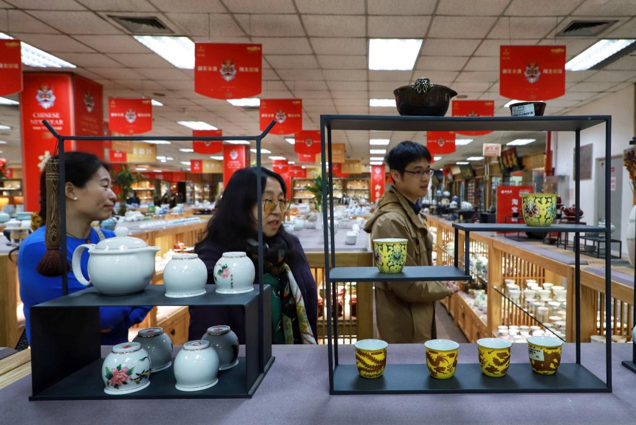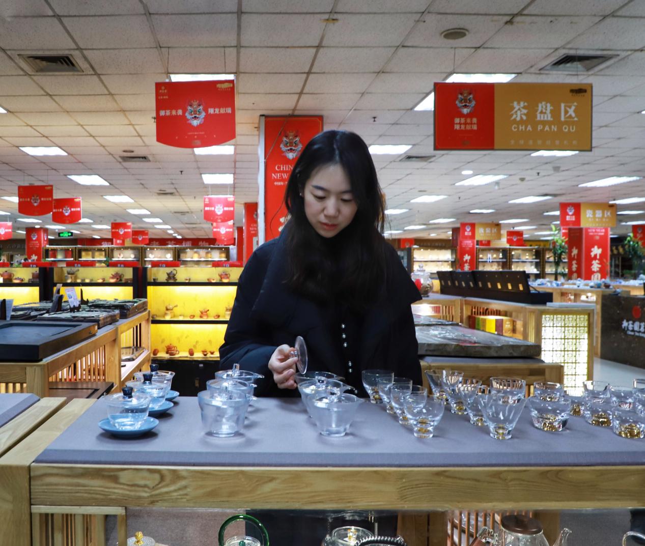 接着大家步行至马连道茶城,体验茶城街区氛围,来到冠牌茗茶访店品茗、参观茶具专区。茗茶店负责人讲述了马连道茶城的历史、安溪茶业的发展以及饮茶趣事,工会会员们在交流中领略到马连道老经营户的风采,并品鉴了安溪铁观音、金骏眉等福建名茶,鉴赏了茶壶、茶杯、茶宠等各种茶具。最后,茗茶店负责人和会员们互赠了精美纪念品。