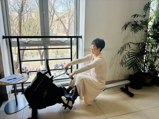 比赛期间,无论晨光初照还是余晖未尽,教工之家都热闹非凡。参赛教职工两两搭档,踏上划船机,开启每日的“逐浪之旅”。他们紧握手柄,随着模拟水流的节奏奋力划动,每一次拉桨都是力量的爆发,每一次回桨都是蓄势待发。有的组合配合默契,节奏明快,计数表上的数字飞速攀升;有的选手虽稍显吃力,但咬紧牙关、坚持不懈,在队友的鼓励声中突破自我。加油助威声交织回荡,让赛场充满激情与活力。