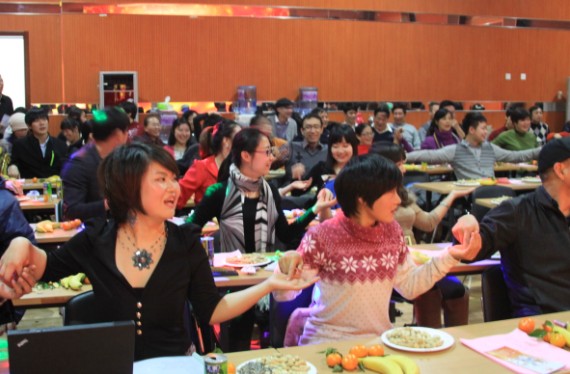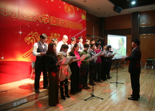 12月28日,体育部全体教师、研究生以及离退休教职工在邱德拔体育馆欢聚一堂,共同迎接2012年的到来。