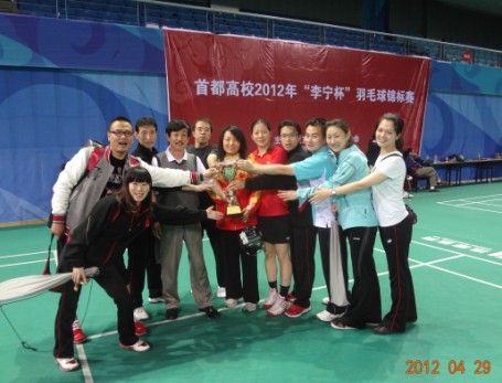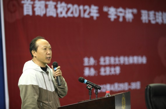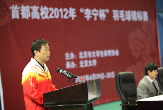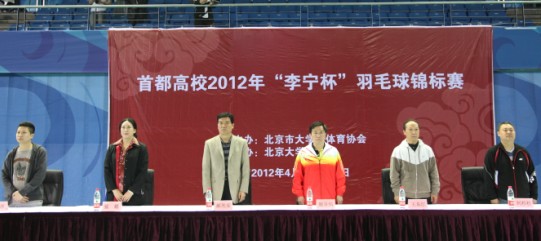 首都高校2012年“李宁杯”羽毛球锦标赛于4月29日–30日在北京大学邱德拔体育馆举行。中国羽协副主席、中国大羽协主席、北京交通大学党委副书记颜吾佴,北京市教委体卫艺处处长王东江,中国大羽协秘书长曹培春,北京市大体协竞赛委员会主任、北京大学体育教研部主任郝光安,北京大学体育部书记张锐,北京大学工会副主席刘彬彬应邀参加开幕式并致辞,颜吾佴和王东江为大会开球。
