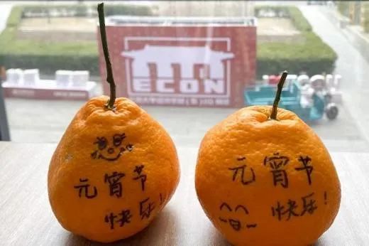 经院背景板下元宵节的橘子,虽然没有在家过元宵节,但是在学校也很开心耶!