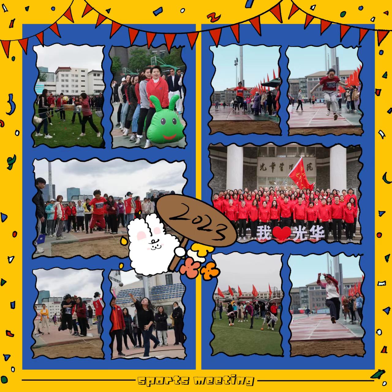 光华管理学院近百名教师代表参加了运动会入场式方阵,团体操表演、个人单项及团体趣味等多个项目的比赛。他们步伐整齐,高喊“青春光华,共向未来”,意气风发的走过主席台,展现了新时代光华人的精神风貌;他们随着音乐响起,迅速将手举起,行抱拳礼,连贯而不失节奏的表演,把太极的精神体现的淋漓尽致;他们在赛场上的奔跑、起跳、投掷和团队合作,赛出了光华人的执着。
