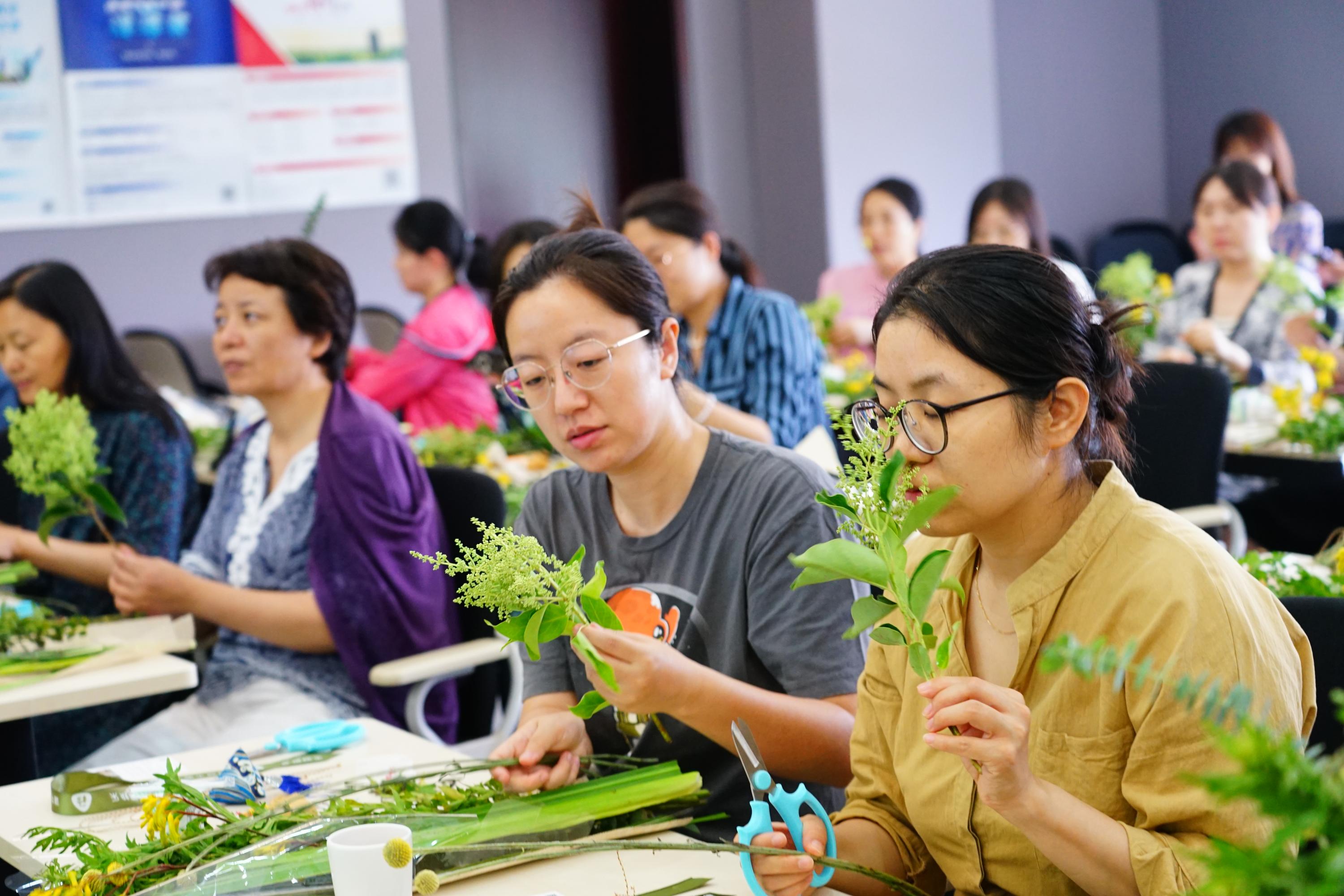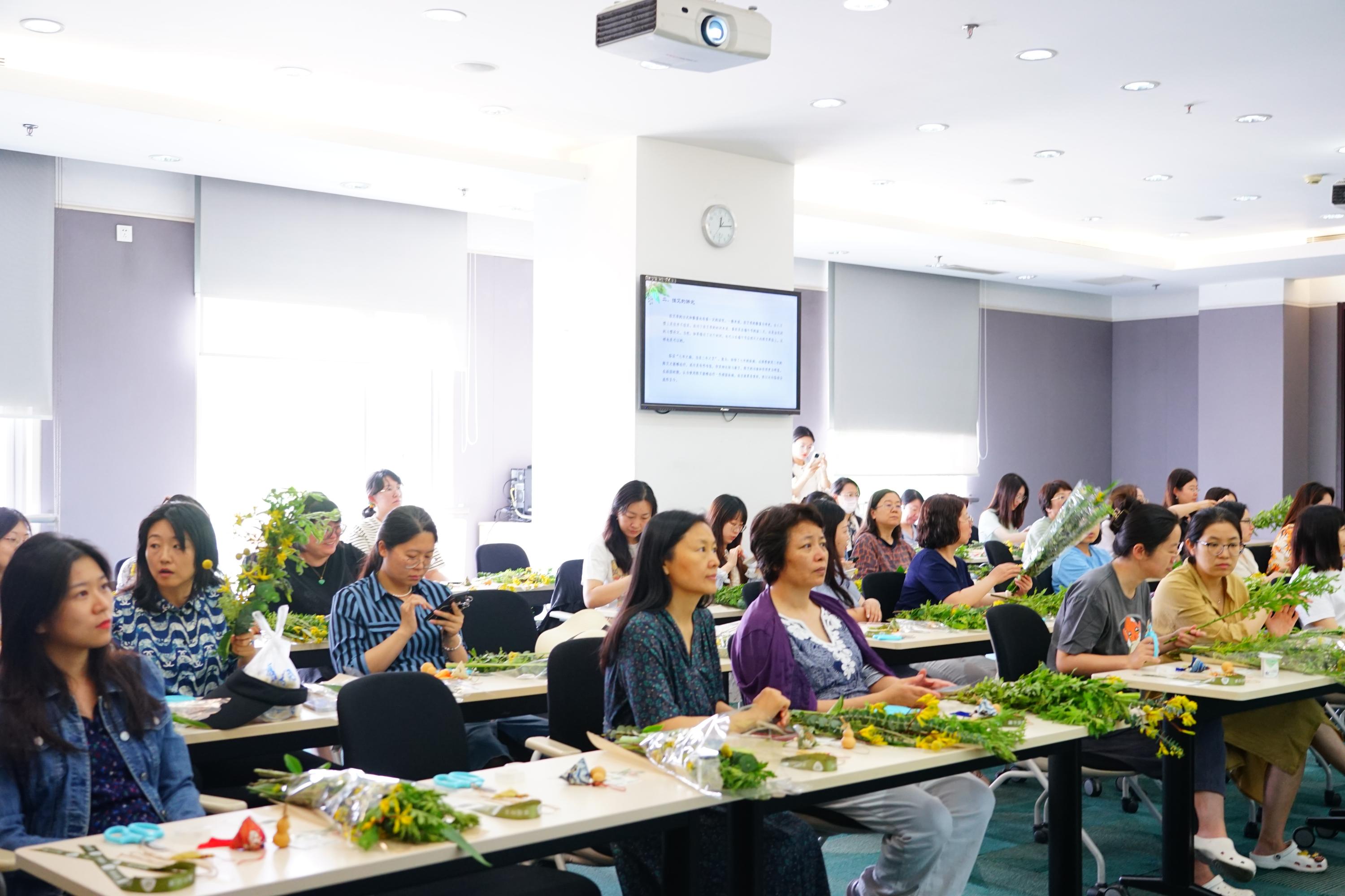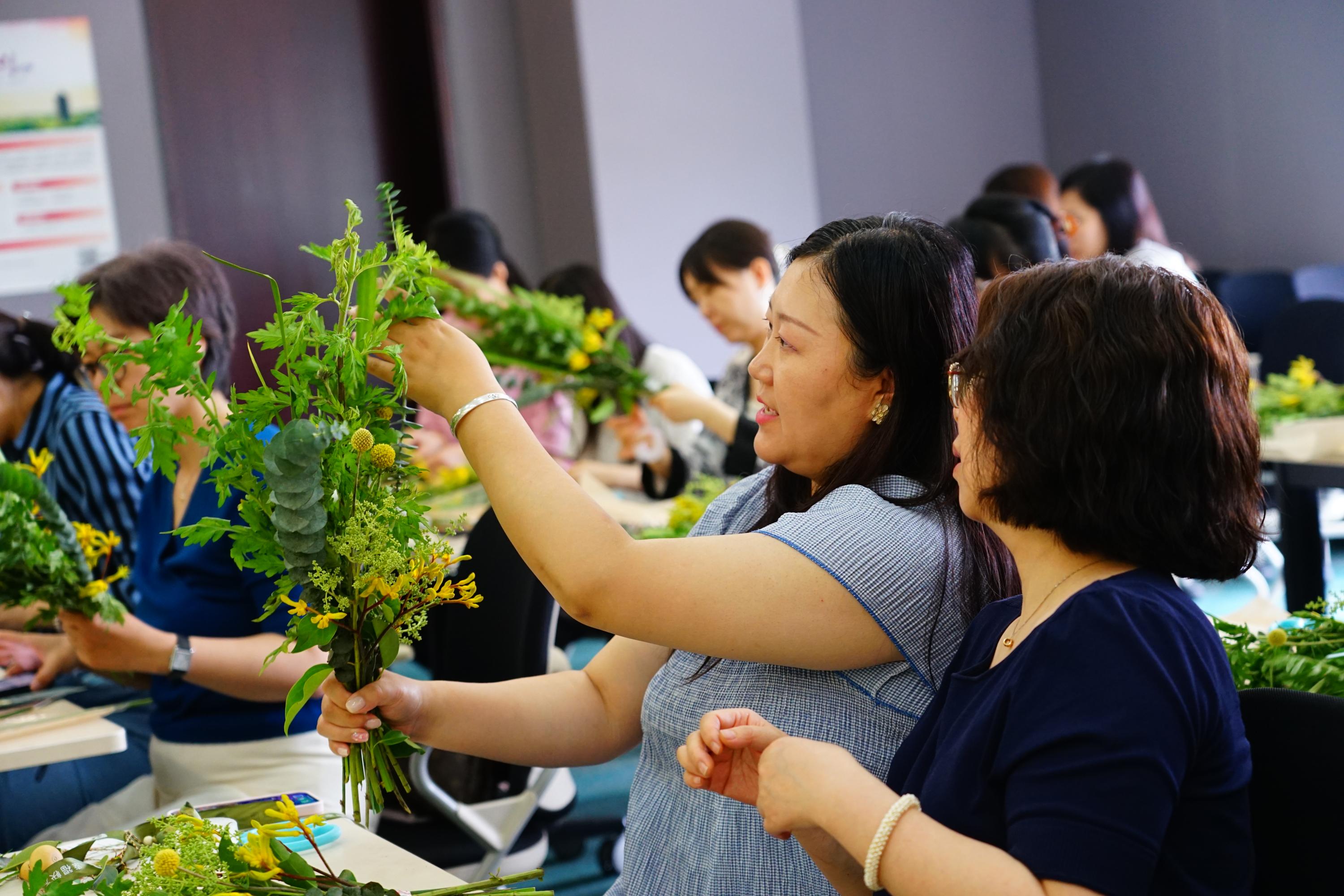 活动伊始,工会为到场的每位老师准备了丰富的花材,包括新鲜的艾草、菖蒲叶以及其他多种配花材料。在雪湖之境花艺师杨雪老师的细致指导下,大家纷纷化身花艺匠人,认真挑选花材,修剪枝叶,精心设计花束造型。现场气氛热烈而有序,欢声笑语不断。据了解,端午节挂艾草是中国传统习俗之一,寓意驱邪避害,祈求健康平安。在这个特殊的日子里,亲手制作一束艾草花束,不仅是对传统文化的传承,更是对家人朋友的一份深情祝福。
