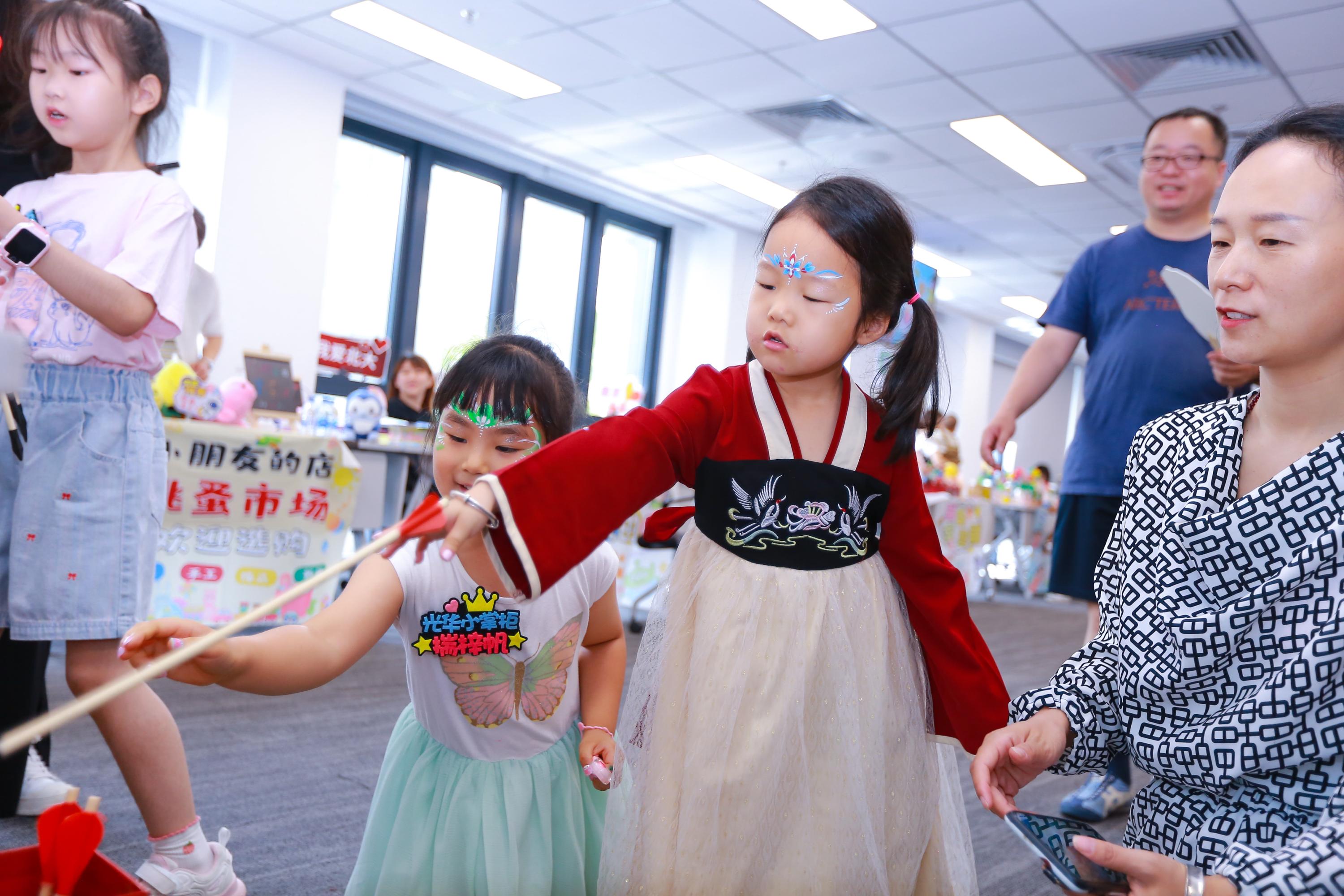 除了美食摊位,市集现场还有小朋友们组织的投壶游戏。孩子们欢声笑语中投掷着壶,每投中一次都引来一阵欢呼,现场气氛达到了高潮。家长们也积极参与其中,与孩子们一同享受这难得的亲子时光。