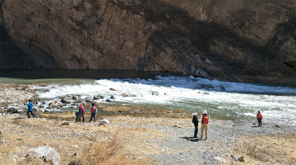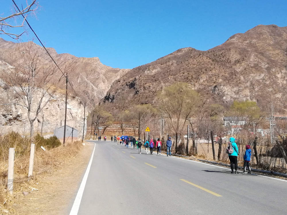 早晨9:30, 近50名教职工及家属驱车来到此次徒步活动的起点,位于北京门头沟区的沿河城村。村子不大,仍然保留着几十年前的样子,有居民2000多,但常住的只剩下200多,沿河城村是永定河水流经北京的第一个村。大家简单参观了村子的街巷,然后沿着永定河一直向北,终点是北京与河北交界的幽周村。全程约15公里,要在6个小时内完成。