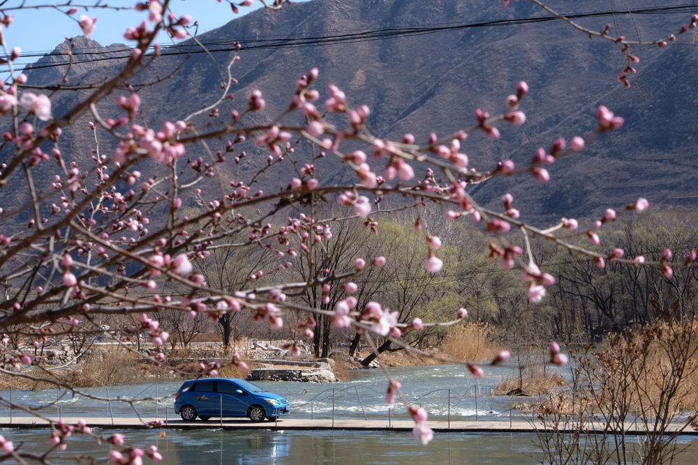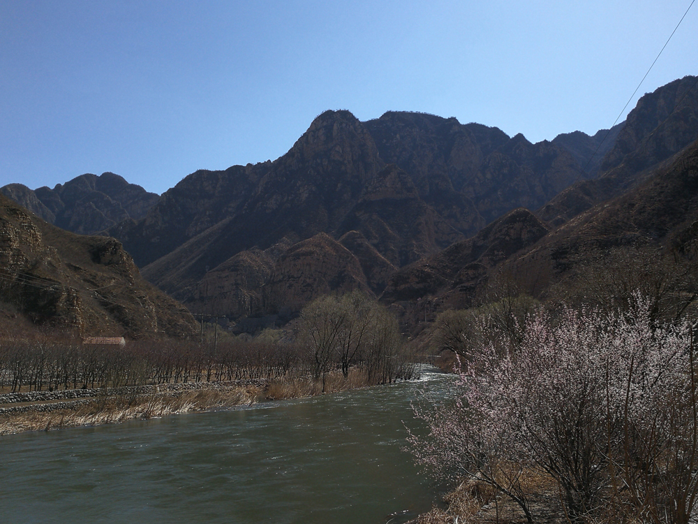 开始时,大家迈着大步一起前行,但很快就拉开了距离,体力好的早已无影无踪。还好,沿途的风景美不胜收,错落有致的山峦、蜿蜒曲折的永定河水,还有经过春风洗礼的新鲜空气、风中摇摆的桃花、蔚蓝的天空…,大家边走边聊边拍照,把美好的风景和团队的友谊,永远留在脑海中和相册里。