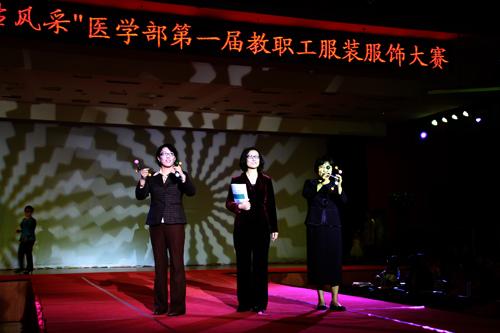 由药学院党委书记徐萍老师亲自带领的女教授代表们组成的职业装充分展示女教师的自信、干练;生活装由女教师和可爱的小朋友们一起展示了女性在家庭中的勤劳、温柔和慈爱;旗袍系列展示巧妙的和百合、藏红花等中药名结合在一起,相得益彰,以中药的古老与传承寓意药学院女教师传播治病救人爱的花种,将表演推向高潮;晚装系列特别邀请了杨晓达和林桂椿老师助演,展示了女教师们美丽时尚的个性风采,精彩表演博得现场观众的热烈掌声。在总共14支参赛队伍中药学院最终获得“二等奖”的优异成绩。
