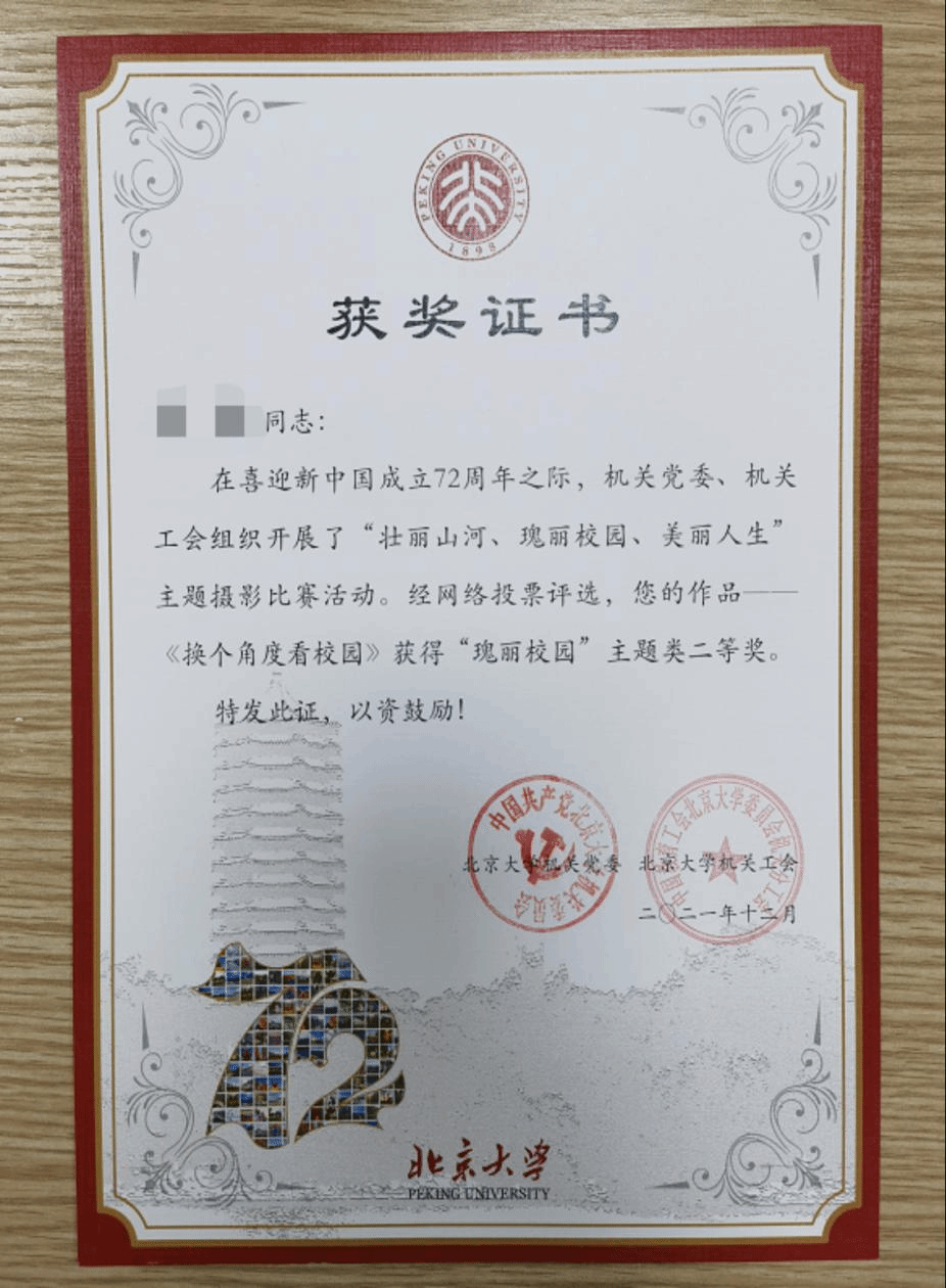 机关党委、机关工会还为每一位投稿选手精心设计了获奖证书,证书用所有参赛者的作品汇聚了数字72的图形,藉此纪念迎接新中国成立72周年的美好时机。