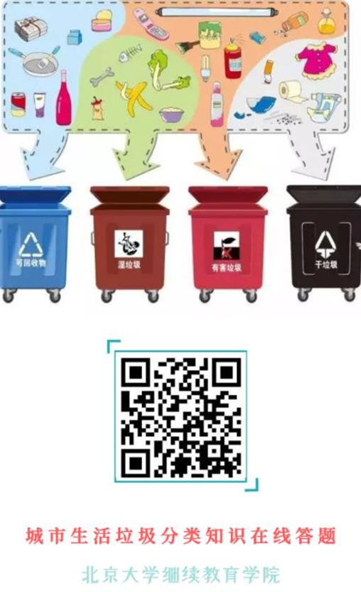 新版《北京市生活垃圾管理条例》已于5月1日正式施行,垃圾分类教育与管理工作是学校履行立德树人根本任务的具体行动,是实践育人、服务育人、管理育人的重要方式。为响应北京大学生活垃圾分类工作领导小组办公室《关于北京大学校园生活垃圾分类工作的通知》的文件精神,进一步推进校园生活垃圾分类工作,需要大家从“靠自觉”到“讲规则”,由北京大学继续教育学院工会以邮件、学院微信群、学院展板等多渠道加强宣传,确保通知到每一位教职员工参与《城市生活垃圾分类》学习活动及线上竞答,通过图文并茂的学习资料更加形象具体地了解厨余垃圾、可回收物、有害垃圾、其他垃圾的分类规则及方法。