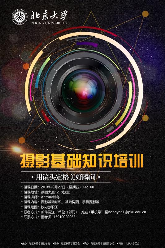 为深入贯彻党的十九大精神,围绕学校、继续教育学院和昌平校区中心工作,多角度、多视角、立体化诠释改革开放以来我们周边生态环境、人文环境发生的变化,激发和弘扬社会正能量,继续教育学院9月启动“新时代的真善美”摄影比赛活动。本活动面向继续教育学院党总支全体党员、积极分子及群众征集摄影作品,鼓励和动员员工用镜头来记录、展示生活中的变迁与精彩故事。本次摄影比赛由继续教育学院党总支主办,院工会摄影小组承办。为了保证作品质量,提升大家对摄影工作的积极性,增强摄影技能,组委会于近期举办摄影讲座,聘请外埠商业摄影名家韩冬来院授课。