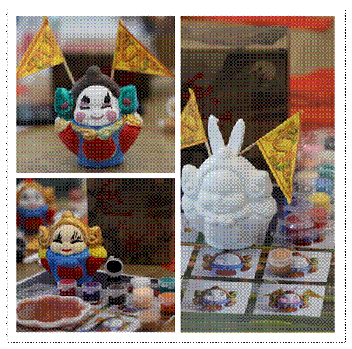 而现场由宁波银行准备的“兔儿爷”即是其中的经典款式。拆开包装,只见尚未上色的小兔圆滚滚地立着,背插金色龙纹旗帜;拟人化的面庞上还带着婴儿肥和淡淡的微笑;生动可爱的样子惹得老师们纷纷爱不释手地把玩起来。