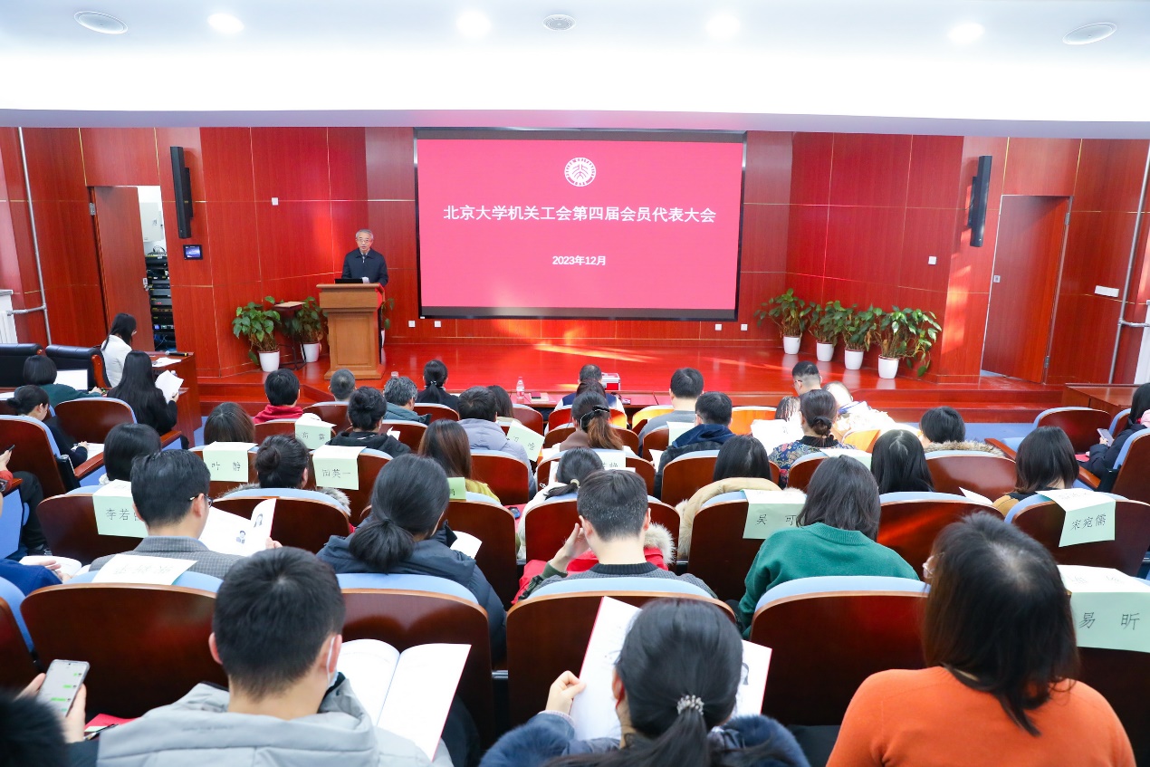 2023年12月28日,北京大学机关工会第四届会员代表大会在哲学楼101室召开。会议听取并审议了机关工会主席田越所作的机关工会第三届委员会工作报告,并选举产生了新一届工会委员会。北京大学校务委员会副主任兼秘书长、工会主席安钰峰,校工会常务副主席张宝岭,机关党委书记刘旭东出席会议,机关工会第三届委员会委员、机关工会各小组代表参加会议。会议由机关党委副书记袁红利主持。