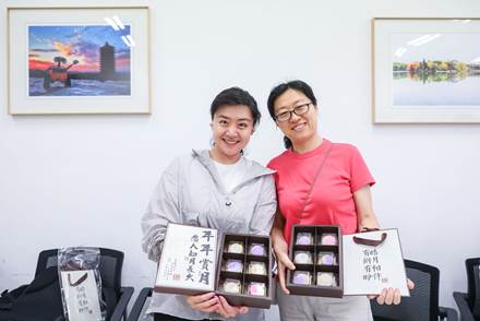 “制作月饼急不来!要胸有‘成竹’——揉面团时就要充分考虑色彩搭配,打开磨具时才有‘惊艳’的效果,”在随后的品鉴环节,机关老师们交流制作经验、分享制作感受,打卡拍照、发朋友圈,有的老师则将刚刚制作完成“带着温度的”月饼小心翼翼地装在精美的伴手礼盒中。“这个中秋节给家人带去几分不一样的惊喜,共享甜蜜与幸福。”伴着欢声笑语,温馨甜蜜的节日氛围在整个房间弥漫开来。
