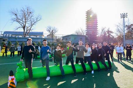 对“毛毛虫竞速”“激情旋风”这些经典项目的规则技巧,老师们早已熟稔在心、心领神会。但比赛竞争愈发激烈,成绩也不断刷新。“一二一二”“左右左右”——老师们骑着毛毛虫,喊着熟悉的口号,迈着整齐划一、节奏感十足的步伐,向着终点冲刺。“激情旋风”比赛中,老师们手握横杆,围绕桩桶以圆周的形式奔跑,平稳流畅的行进步伐,画出一道道优美的“圆弧”。队友在一旁为队员们加油打气、拍摄照片视频,记录下同事们的矫健身姿、欢乐瞬间。