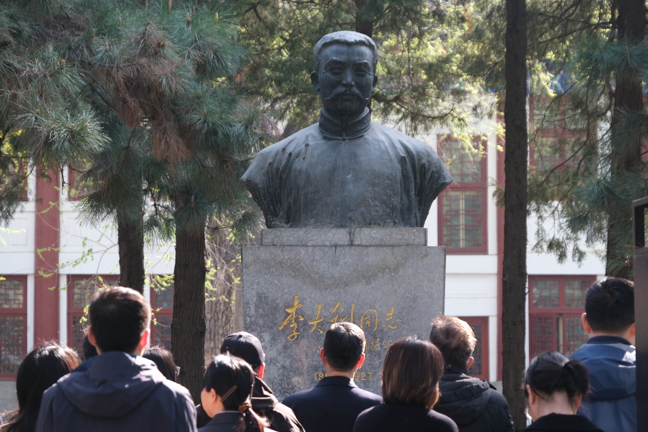 集体瞻仰李大钊像、蔡元培像并献花