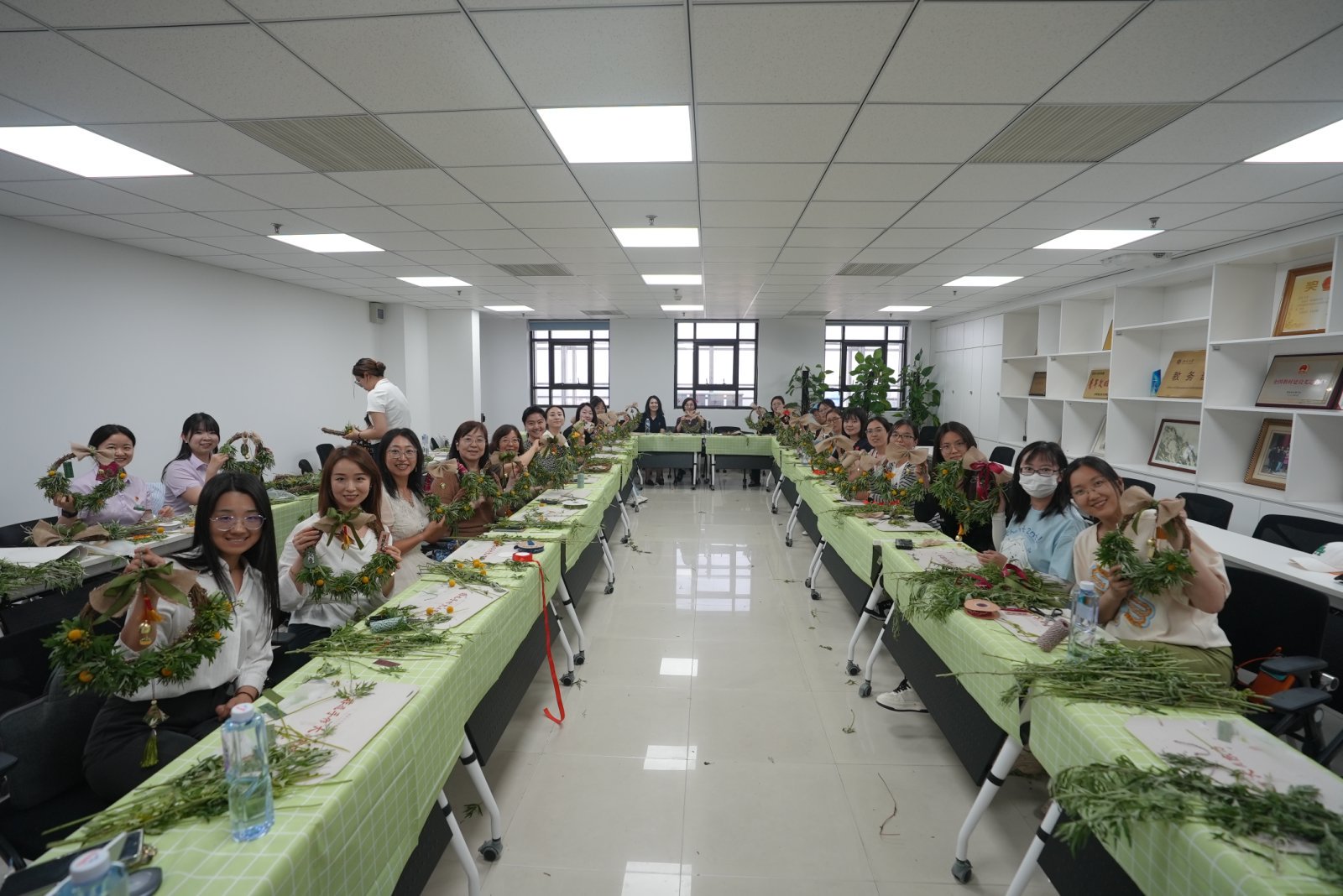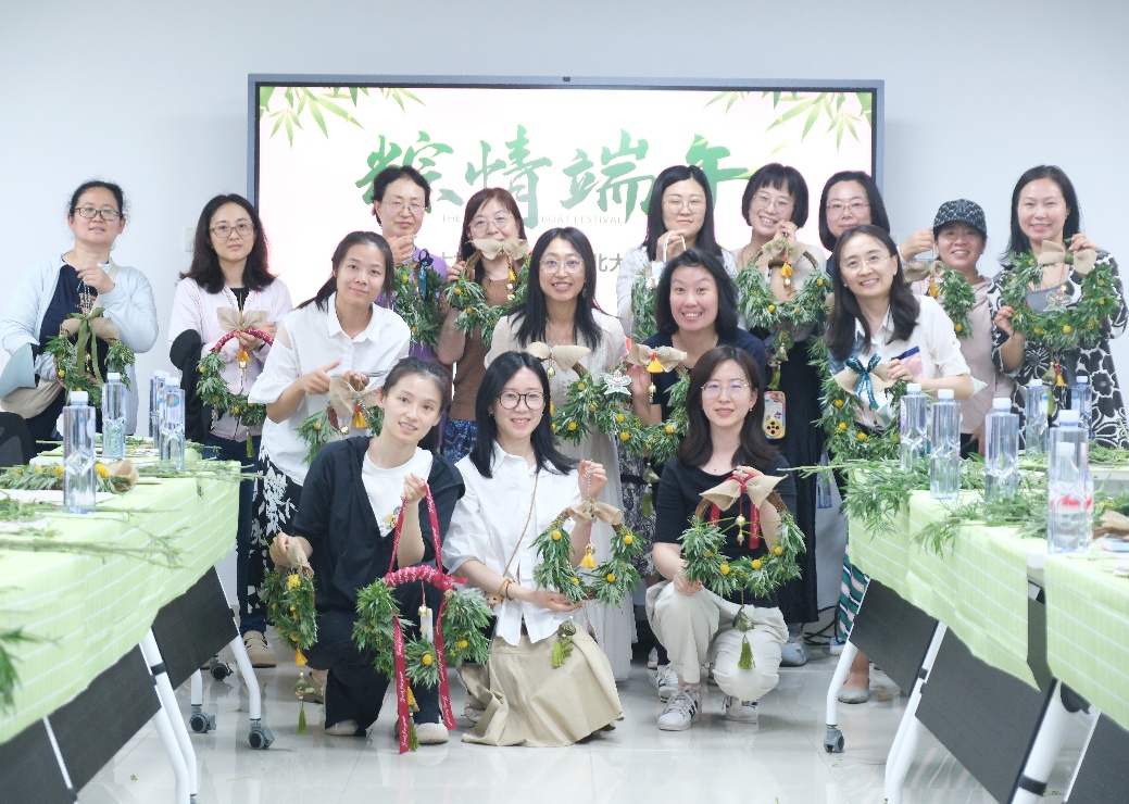 制作结束后,老师们都开心地互相展示着自己的艾草花环,并合影留念。大家表示,此次活动极具创意,不但体验了有趣的艾草花环制作过程,更增进了自己对端午节传统习俗的了解。