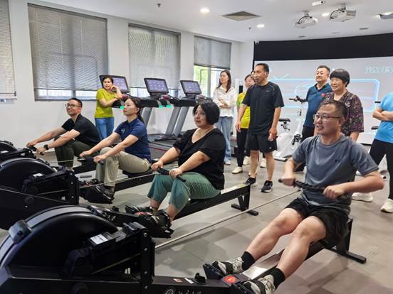 活动开始时,先由体教部吴定峰老师简要介绍了智慧健康驿站的成立背景及开展情况。之后,吴老师将参与活动的老师们分为四个小组,依次体验了划船机、骑行机、滑雪机、登山机和拳击机等智能健身设备。这些设备依托先进的数字技术,实时反馈运动数据,模拟真实运动场景,让参与者在趣味互动中锻炼身体、放松身心。活动现场气氛热烈,老师们热情高涨,在专业指导下积极尝试,互相鼓励,充分展现了北大教职工的活力与风采。