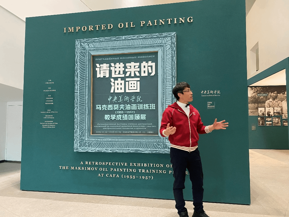 在简单游览过校园景致后,师生们齐聚在中央美术学院美术馆入口处,等待着央美的金牌导览王老师为我们开启这次活动华彩篇章。 这次参观观展的是中央美术学院《请进来的油画》及《中央美术学院美术馆藏陈列-现代中国美术》。走进美术馆,迎面而来的《请进来的油画》宣传海报,此次展览主要是马克西莫夫油画训练班教学成绩回顾展,即康斯丁·麦法琪耶维奇,马克西莫夫(1913-1993),俄罗斯联邦人民艺术家1943年从莫斯科苏里柯夫美术学院毕业后留校任教该院油画系。马克西莫夫主持的中央美院油画训练班,是上世纪50年代新中国全面向苏联学习和大力培养人才方针在美术界的突出反应。这种以国家名义将苏联专家请进国门开展教学的组织形式俗称“请进来”,而比“请进来”略早的向苏联公派留学生则被称为“派出去”。无论是实施“请进来”还是“派出去”,文化部直属的中央美院都首当其冲,在人才培养方面承担了重要使命,为新中国现代美术教育体系的建立奠定了坚实基础。此次展览聚焦马克西莫夫油画训练班,重温当年的教学历程和毕业创作,以及文献、手稿,感动于师生共同提高油画水平的兢兢业业。这是中央美术学院教学的动人篇章,也是中国现代美术发展的关键一环。