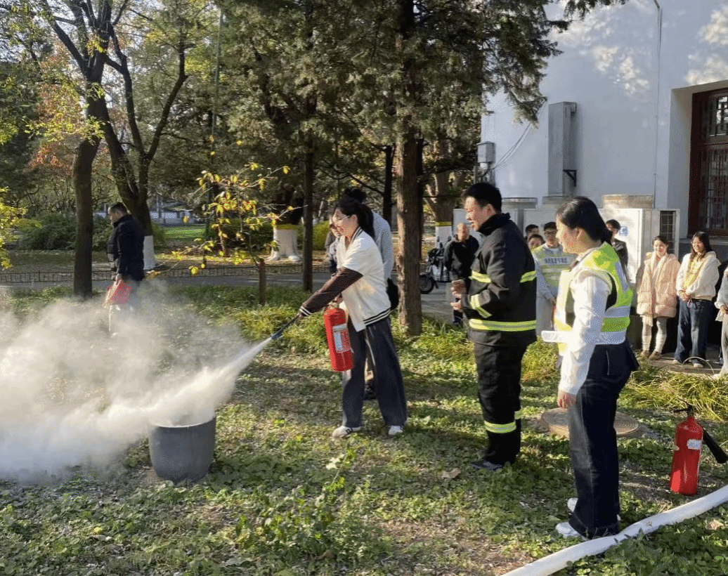 随后,师生们亲自操作消防器材干粉灭火器和二氧化碳灭火器的使用演练,在实践中学习了如何正确、有效地灭火,增进了对消防知识的理解。