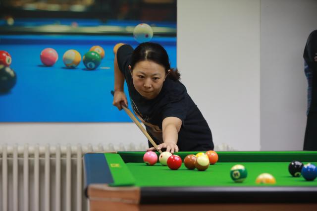 在工会小组长的积极动(忽)员(悠)下,校工会张莹、王维斐、韩妍三员女将组成了一只女子代表队,踊跃的报名参加比赛。三位队员均是首次参加类似活动,其中两位队员甚至从未摸过台球杆。认真的队员们提前一周,观看了财务部的“内战”,积极学习比赛规则。比赛在一片开心欢乐的氛围中开始,机关工会文体委员蒋锴担任比赛裁判兼现场教练。工会女将们边学,边练,边赛,不时击出的好球引来观众阵阵掌声!比赛中,他们完成了进一球的壮举,并凭借对方一次失误,达成了赢一局的小目标!