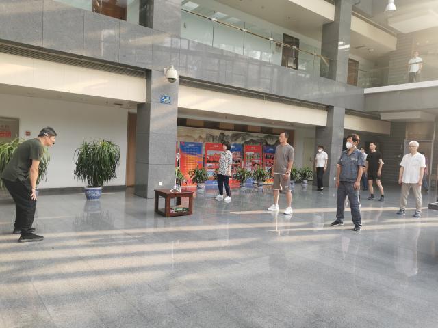 为弘扬中华传统文化、丰富员工文体生活,会议中心工会成立太极拳兴趣小组。小组聘任太极拳资深教练陈文胜进行指导。他出身于武术世家,有着深厚的太极拳功底。