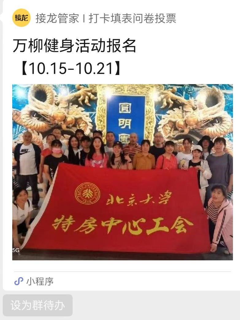 因疫情影响,万柳园区的职工严格遵守学校相关防疫政策,不出园区,尽最大努力减少与社会面的接触。公寓服务中心万柳分工会充分考虑园区职工的健身活动需求,缓解职工因疫情导致的情绪波动,从7月16日开始已组织3个月的每日员工户外健身活动,至今已举办127次。参加人员在领队带领下,共同前往距离万柳公寓500米的长春健身园和巴沟山水园进行健身行走。本活动取得了良好的效果,获得了全体职工的广泛赞誉。