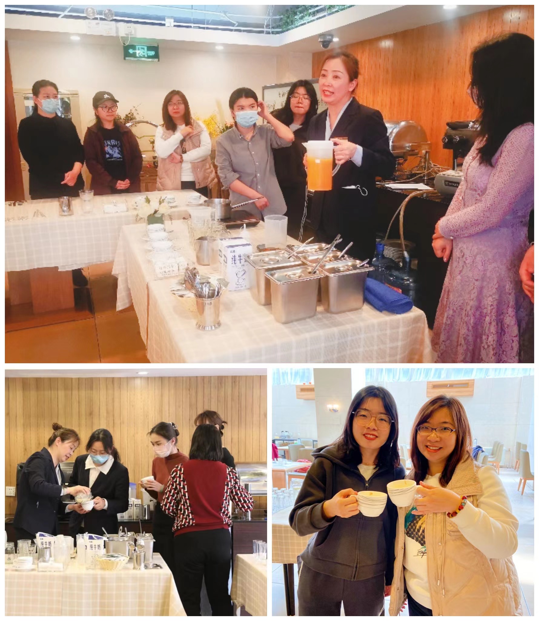 3月8日这天,活动更是精彩纷呈。在阳光明媚的中午,会议中心参加校工会组织的健步走活动,感受初春校园里生机勃勃的景色;在安静美好的下午,后勤系统组织的“花漾饮品 别样女神——自调饮品小讲堂”,大家兴致勃勃地制作了杨枝甘露、红豆布丁奶茶、卡布奇诺(拉花)三款饮料,收获了不一样的新奇体验。而另一处英杰交流中心的广场上,正如火如荼地开展传统游戏“跳皮筋”活动,让大家在节日中充分找寻童年乐趣。勺园、中关新园则在当日贴心准备了节日餐及茶饮、甜点和鲜花。为女员工们送上暖暖的节日祝福。