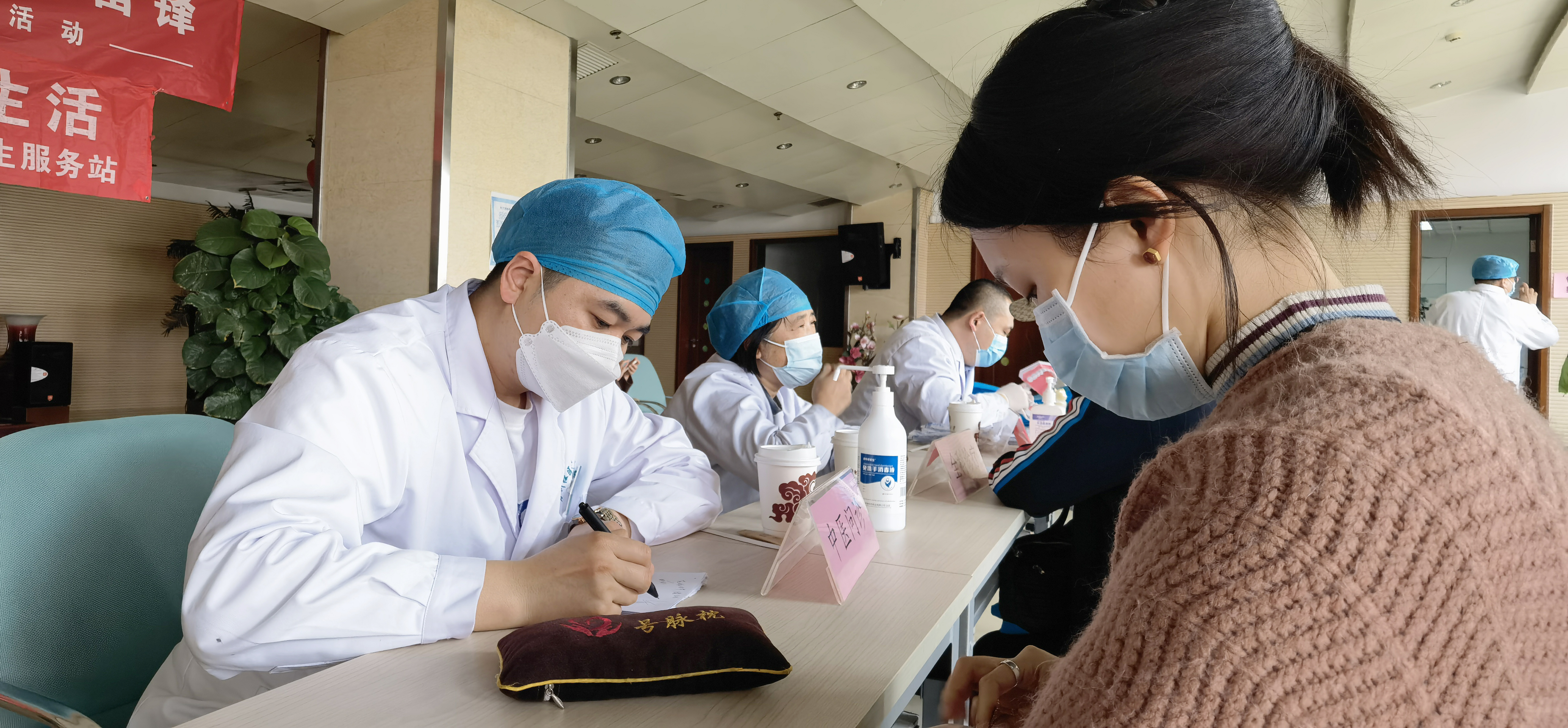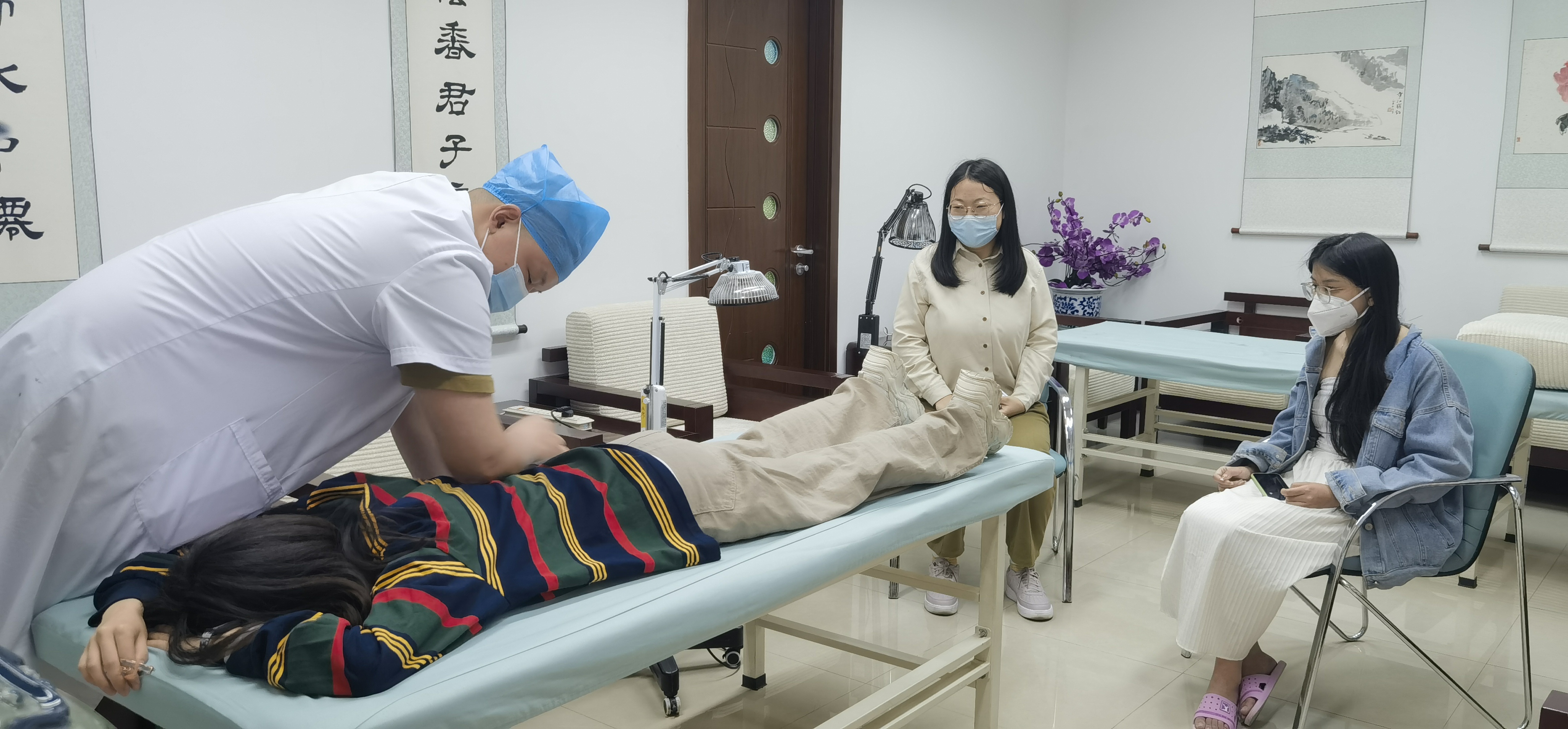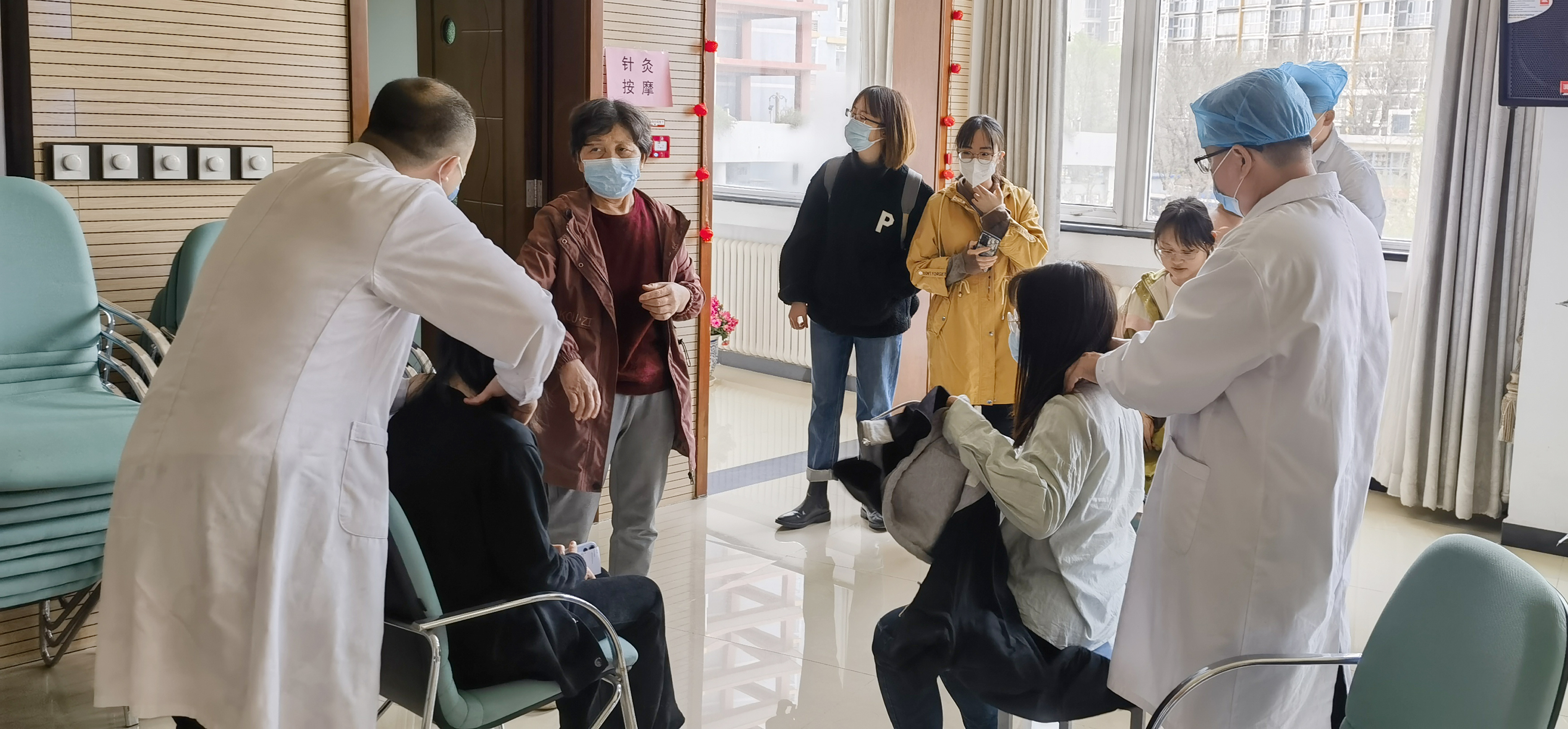 其中,最受大家欢迎的是康复按摩针灸项目。老师们科研教学经常伏案工作,同学们日常学业重,电脑等电子产品使用时间较长,加之持续久坐,致使颈椎、肩颈等部位常伴有僵硬和酸痛等症状。医生们根据每位师生的病情进行针对性的按摩与调理,并在治疗过程中给出日常防范与保健指导建议。按摩针灸室不断传来“疼疼疼…”,“哎呀,疼…”的声音,在“痛并快乐”的感受中,通过医生精准巧妙的按摩手法、恰到好处的穴位拿捏,舒缓了因肌肉紧绷造成的不适感。因需求量较大,按摩医生从2人临时增加到3人,原计划两小时的活动又延长了一个小时,尽量为有需要的师生做好全面检查。