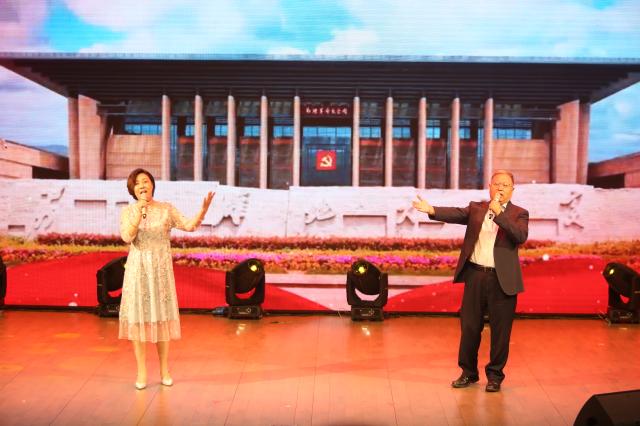 在饱满高亢的歌声下,会议中心原副主任刘寿安、青年骨干韩莹共唱一曲《共和国之恋》开启第三篇章“运·家国同运”,唱响对祖国的美好祝福;今年恰逢对外交流中心成立30周年,舞台剧《卅年浮影·史卷新章》生动展示了创业发展的历程;青年骨干提升营精心准备的合唱《如愿》融入对中心情真意切的朗诵,以及对祖国深情祝福。在歌声的陪伴下,现场嘉宾、全体演职人员上台一同齐唱,将活动气氛推向高潮。